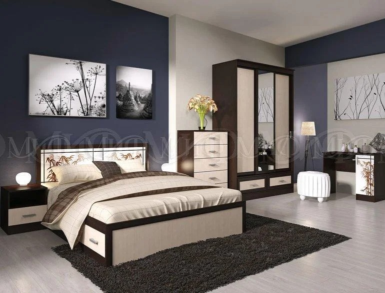 Спальное место: 160х200 см. Материал: ЛДСП, МДФ.