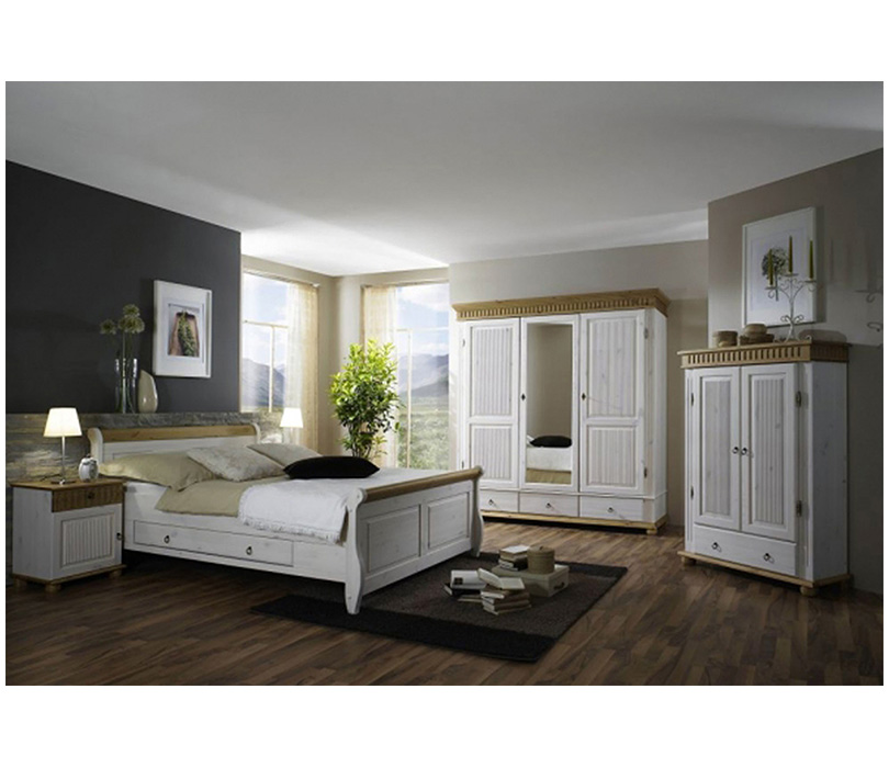 Стильная кровать «Мальта» изготовлена из массива сосны, отличающегося прочностью и надежностью. Центральная часть модели оснащена пятой ногой, предназначенной для равномерного распределения нагрузки. На выбор предлагается несколько модных вариантов отделки: белый воск, белый воск + антик, белый воск + колониал. Вместительные выдвижные ящики, установленные на роликовые направляющие, позволят с комфортом хранить постельное белье.