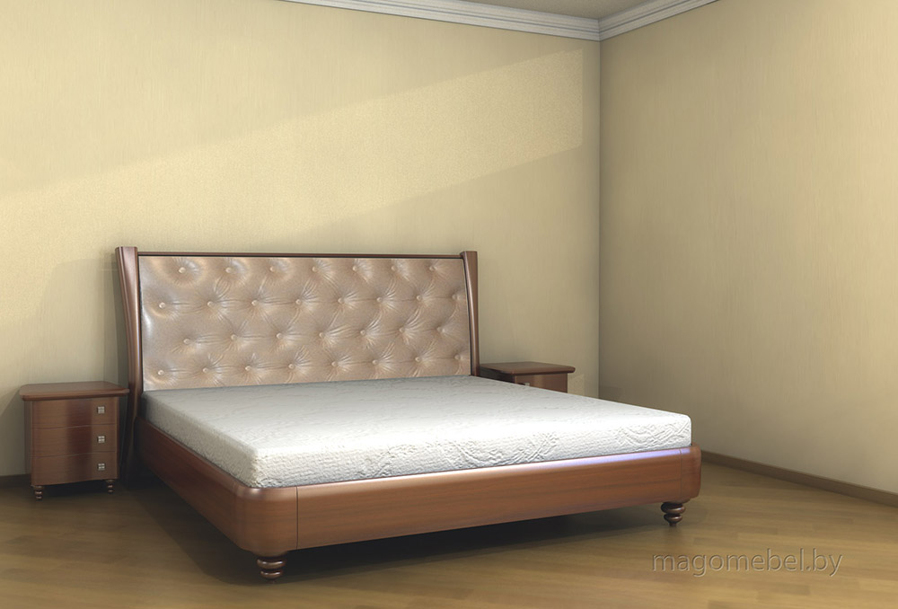Кровать «Марина» сочетает в себе элегантность и роскошь мебели из массива. Прочная конструкция украшена широкой мягкой вставкой в изголовье нежного кремового цвета. Изысканность ей придает симпатичная декоративная стяжка.