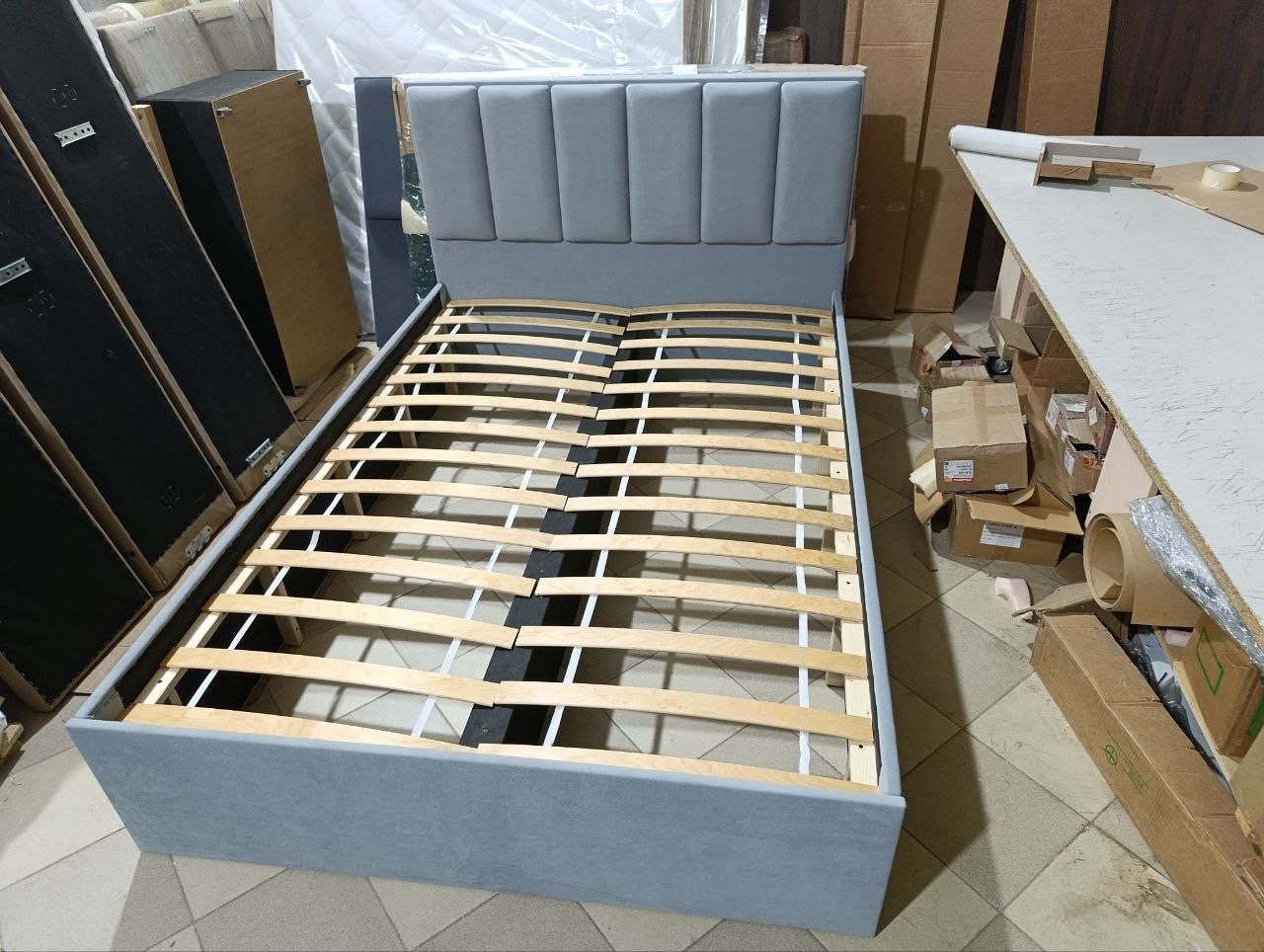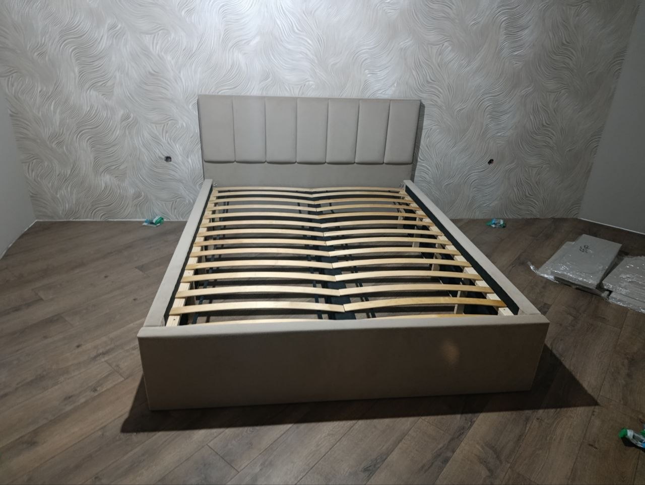 Кровать с ортопедическим основанием и мягким изголовьем. Выбор размера и цвета обивки.