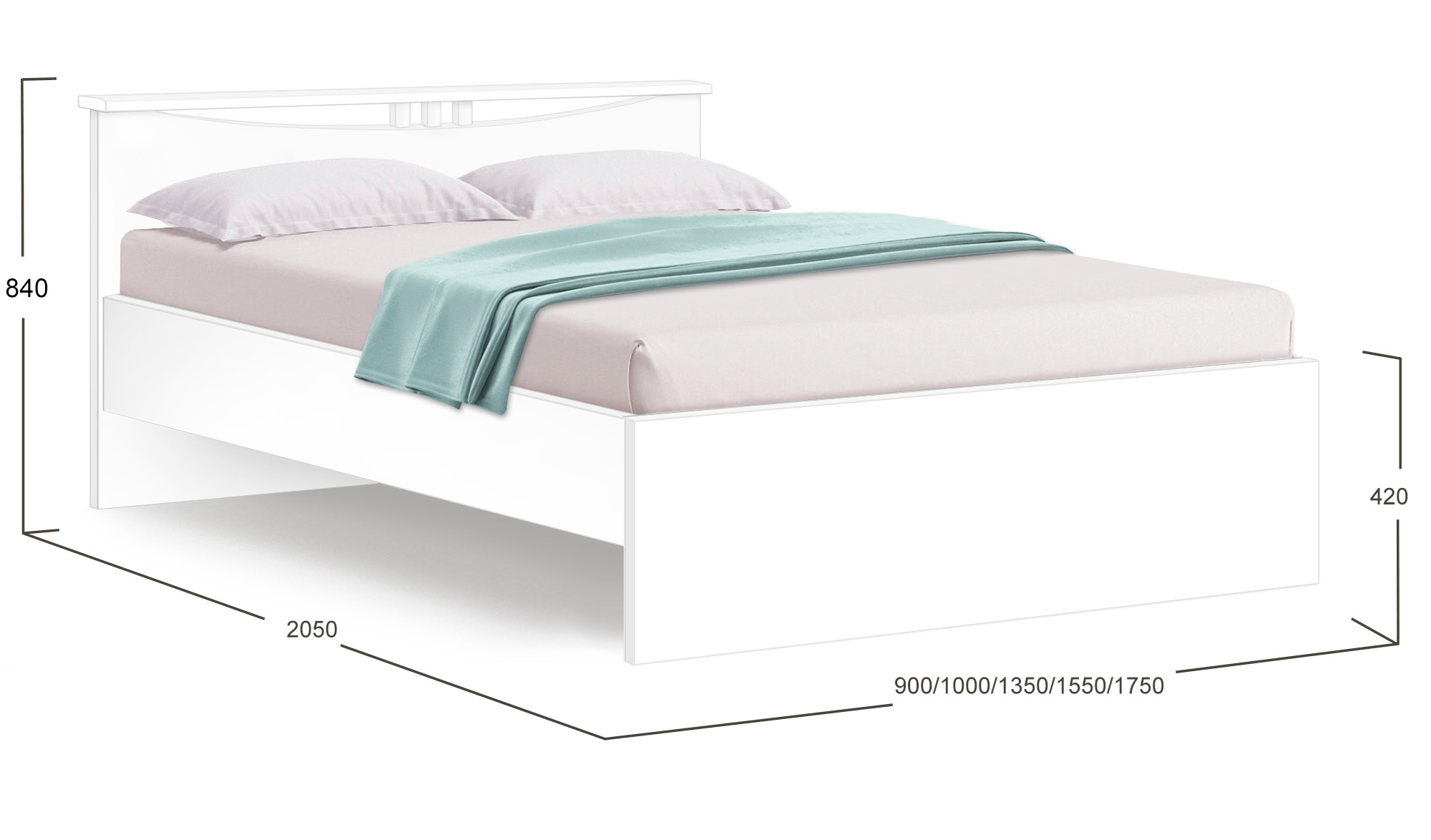 Спальное место (ДхШ): 200х120/140/160 см. Материал: МДФ, ЛДСП, фанера, ткань.