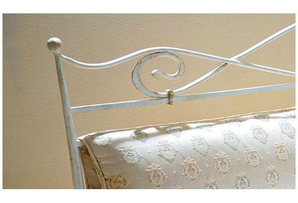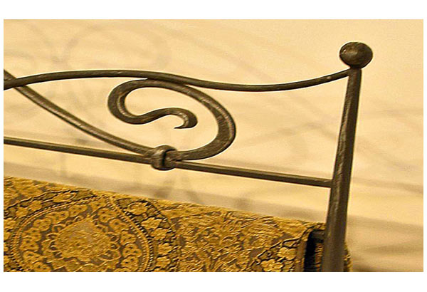 Кованая спинка модели с изыском дополняет общий дизайн. Модель идеально подойдет для комнат с классическим типом интерьера.