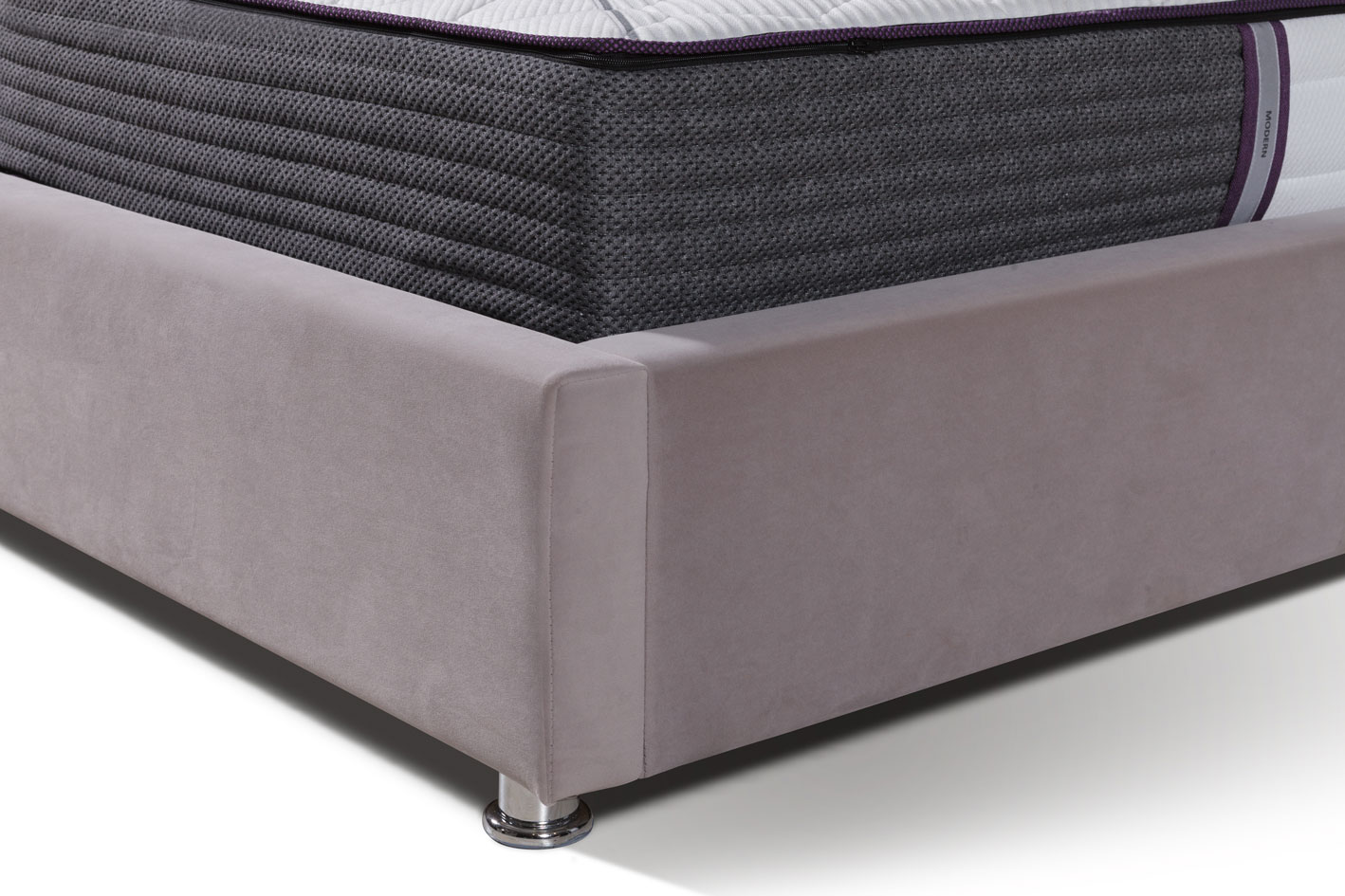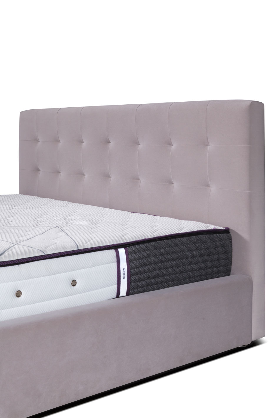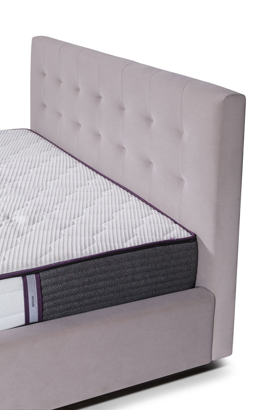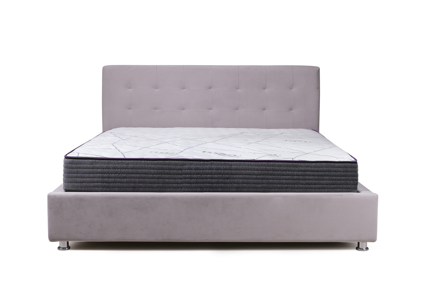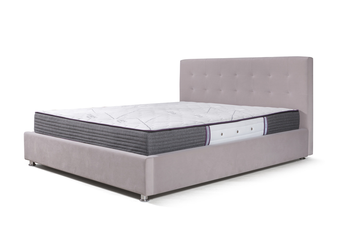 Трендовый дизайн с ровными объемными линиями на изголовье. Большой выбор тканей обивки.