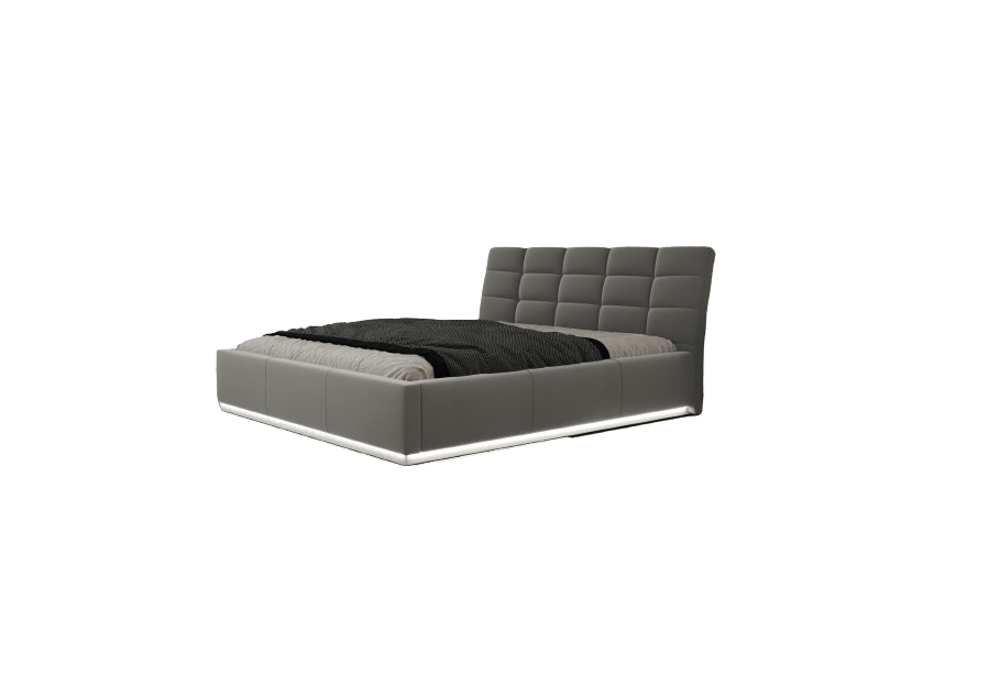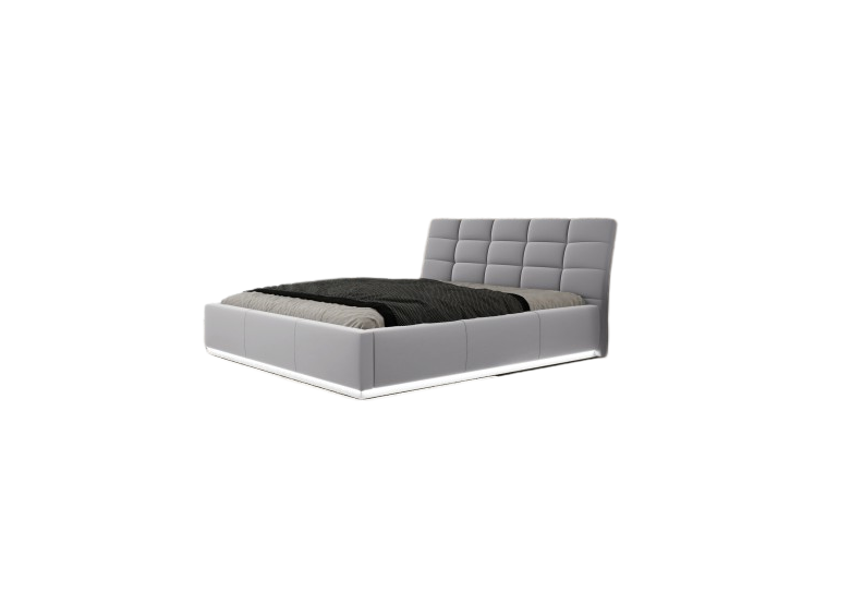 Элегантная кровать с декоративной обивкой: корпус и изголовье покрыто равномерно стеганой обивкой.