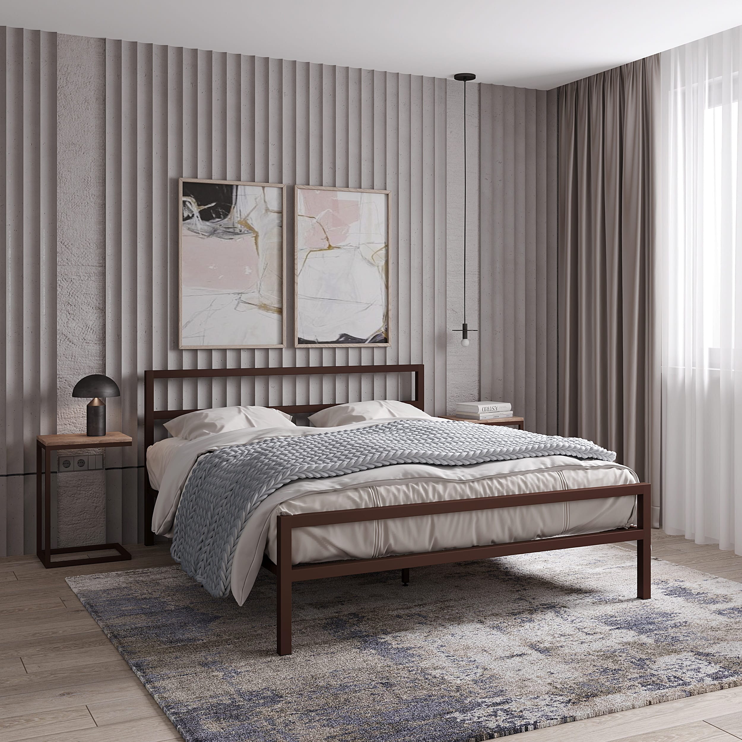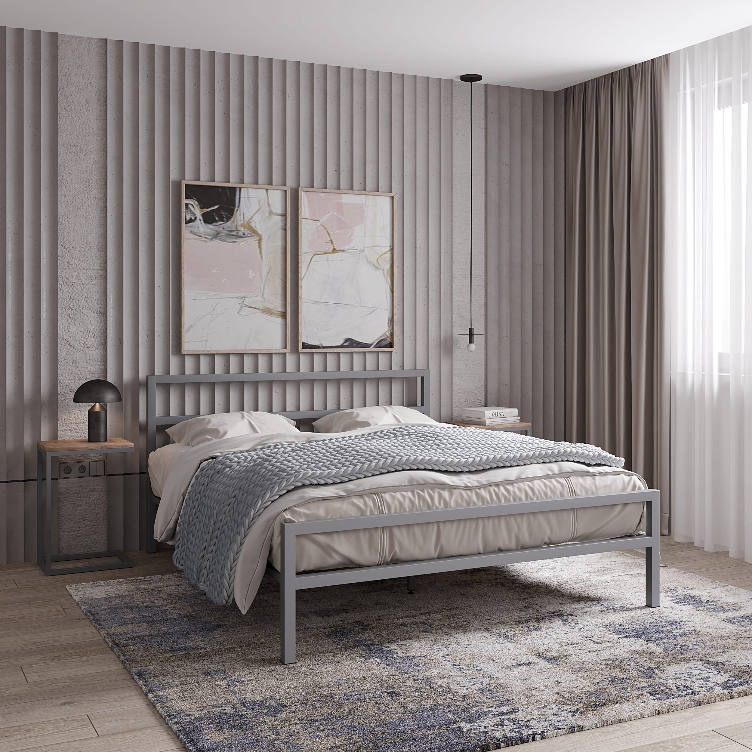 Кровать в стиле лофт на металлическом каркасе. Выбор размера спального места и цвета каркаса.