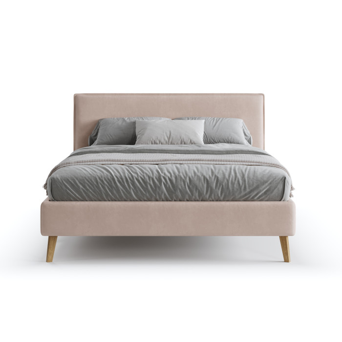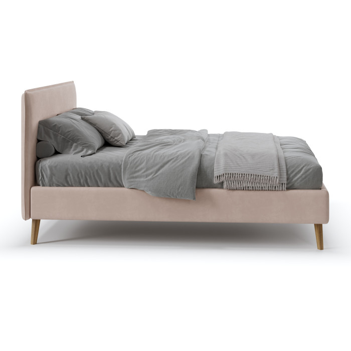 Двуспальная кровать с ортопедическим основанием и мягким изголовьем.