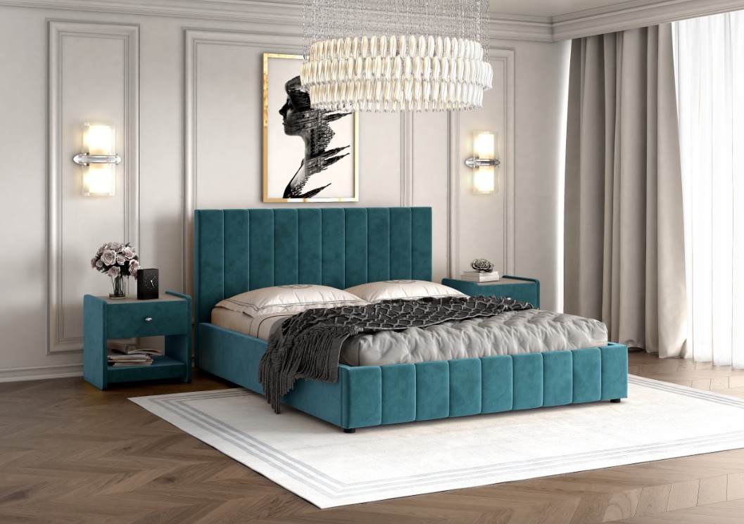 Кровать «Нельсон 1,4» Велюр Бирюза Вертикаль (вар.4)