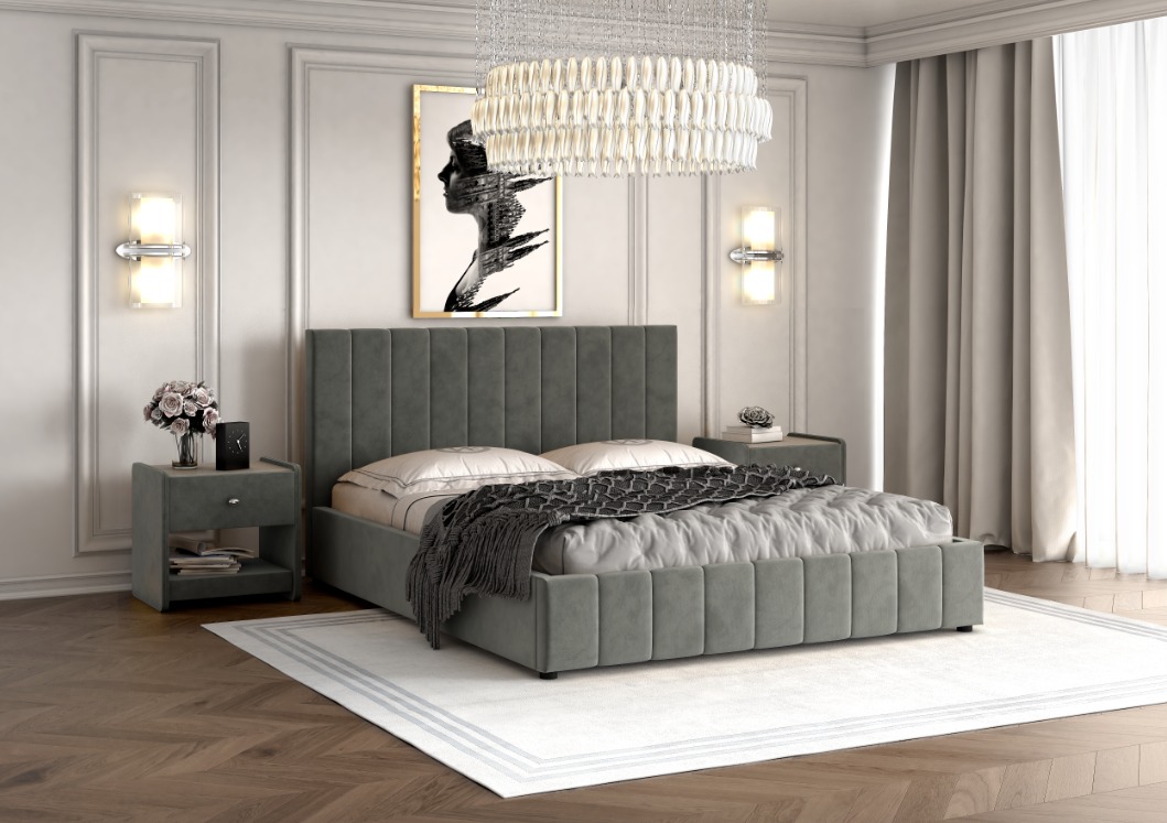 Кровать «Нельсон 1,4» Велюр Холодный серый Вертикаль (вар.2)