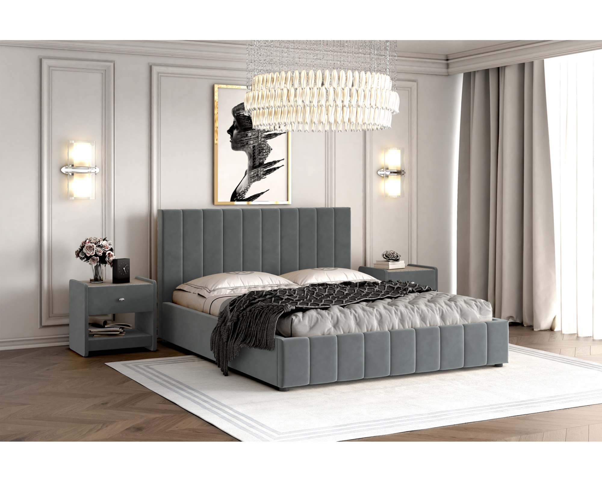 Кровать «Оливия» 2000х1600 микровелюр серый