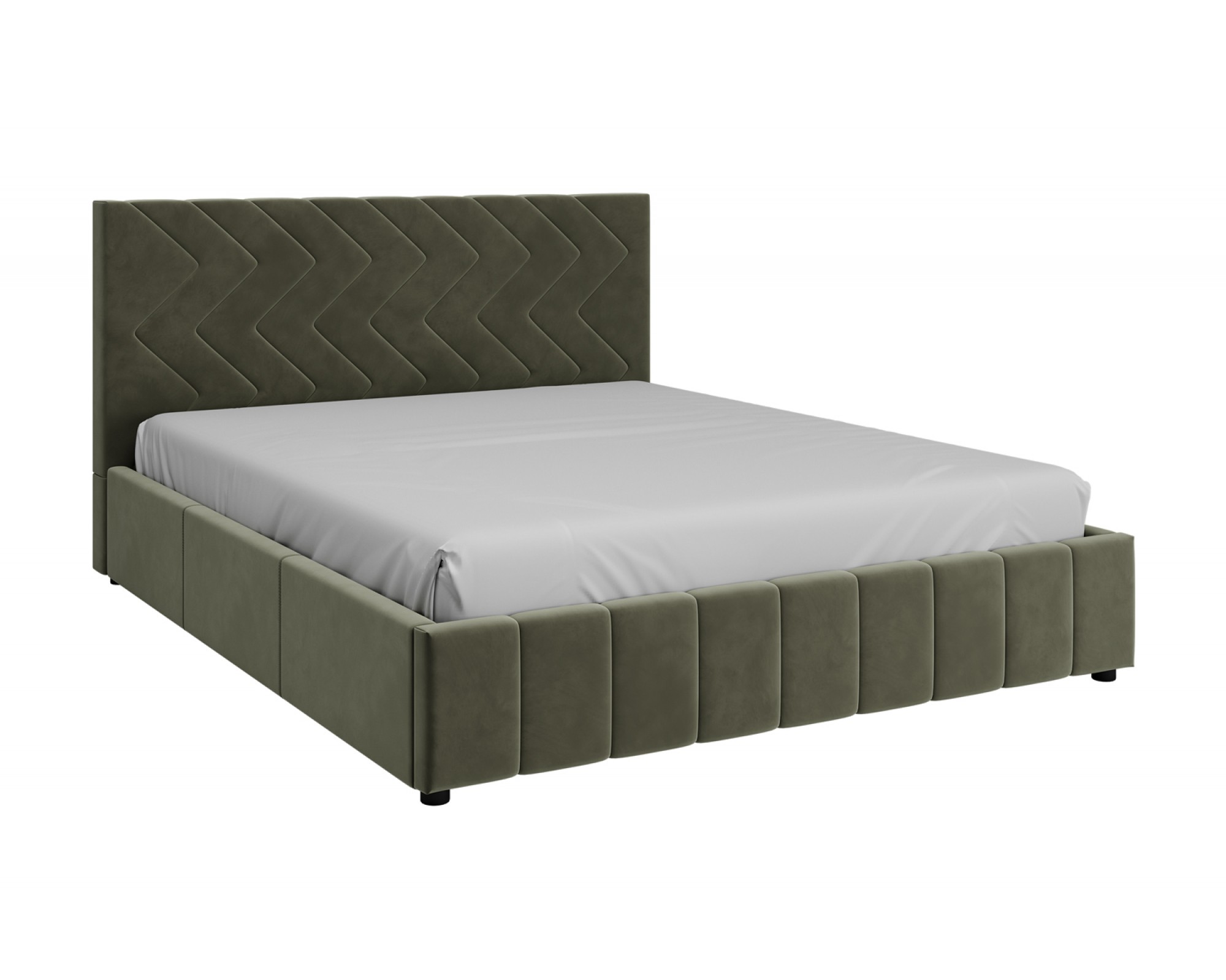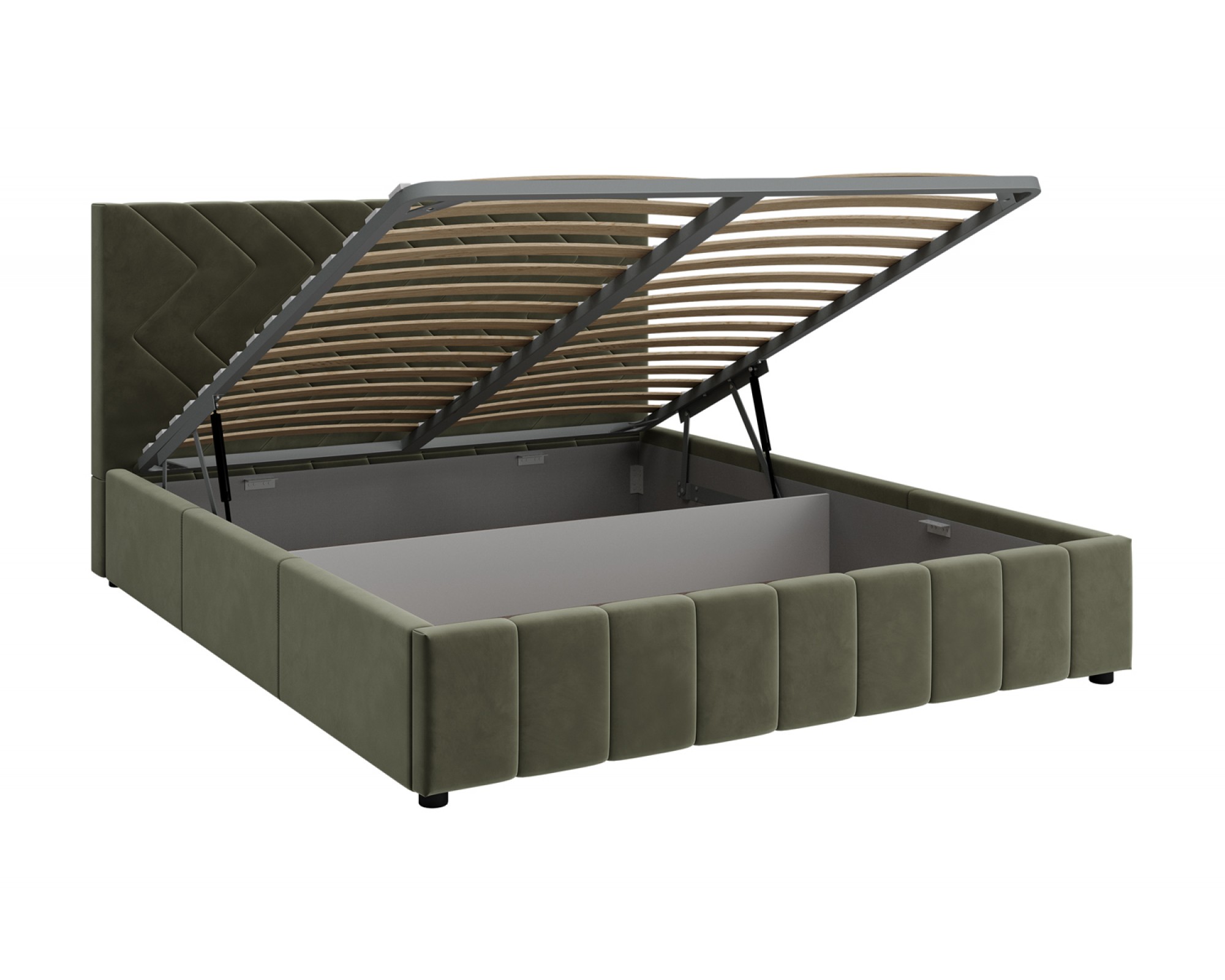 Интерьерная кровать НЕЛЬСОН (Зигзаг) комплектуется металлокаркасным основанием (вариант 1) или металлокаркасом с подъемным механизмом с газовым амортизатором (газлифтом) (вариант 2). В случае выбора 2-го варианта основания спального места в кровати будет находиться вместительный бельевой ящик.