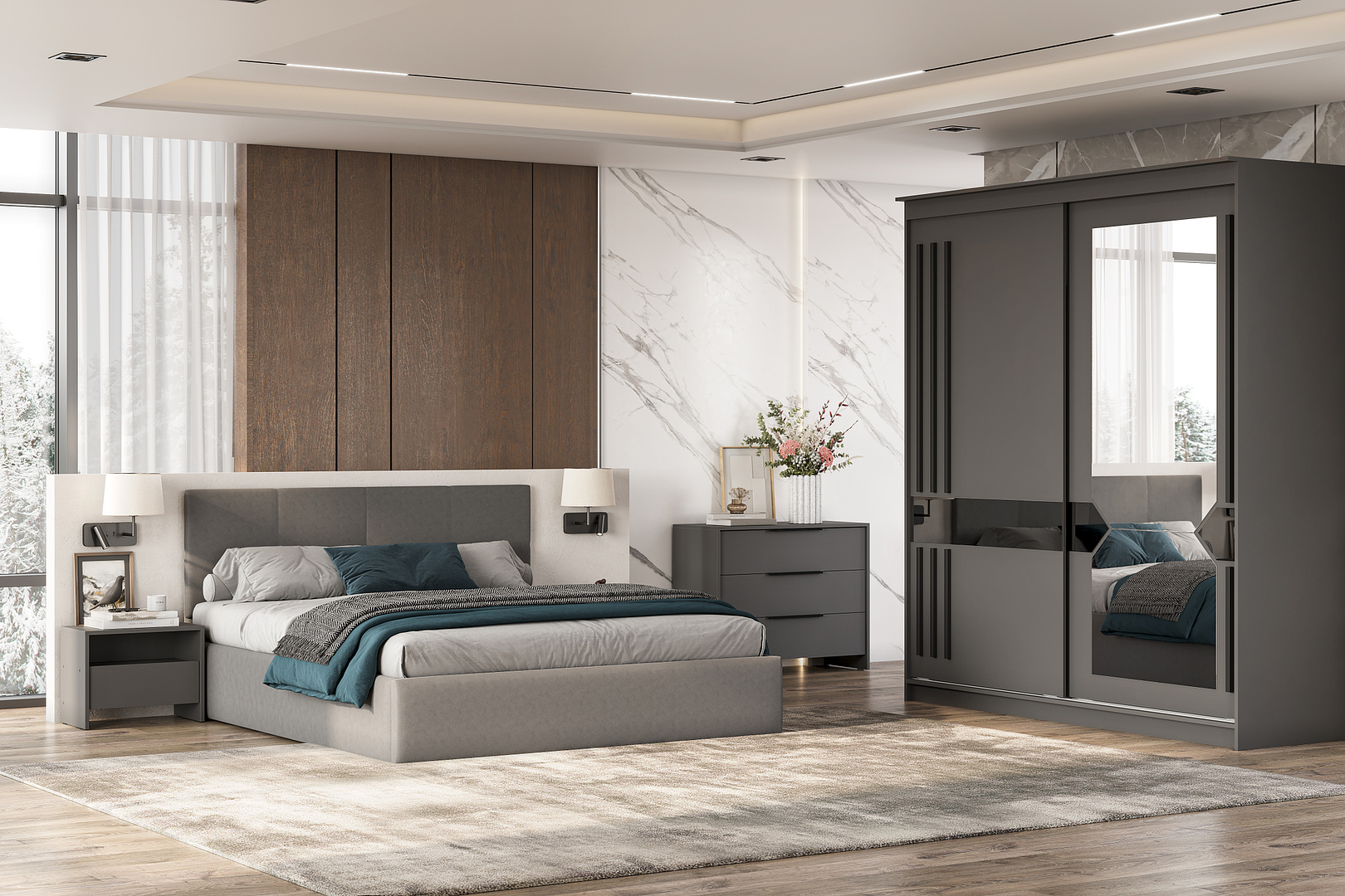 Кровать «Рино» холодный серый (БРАВОмебель)