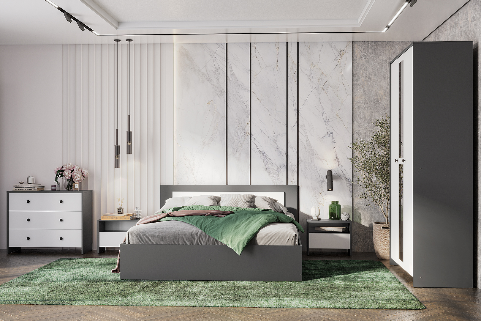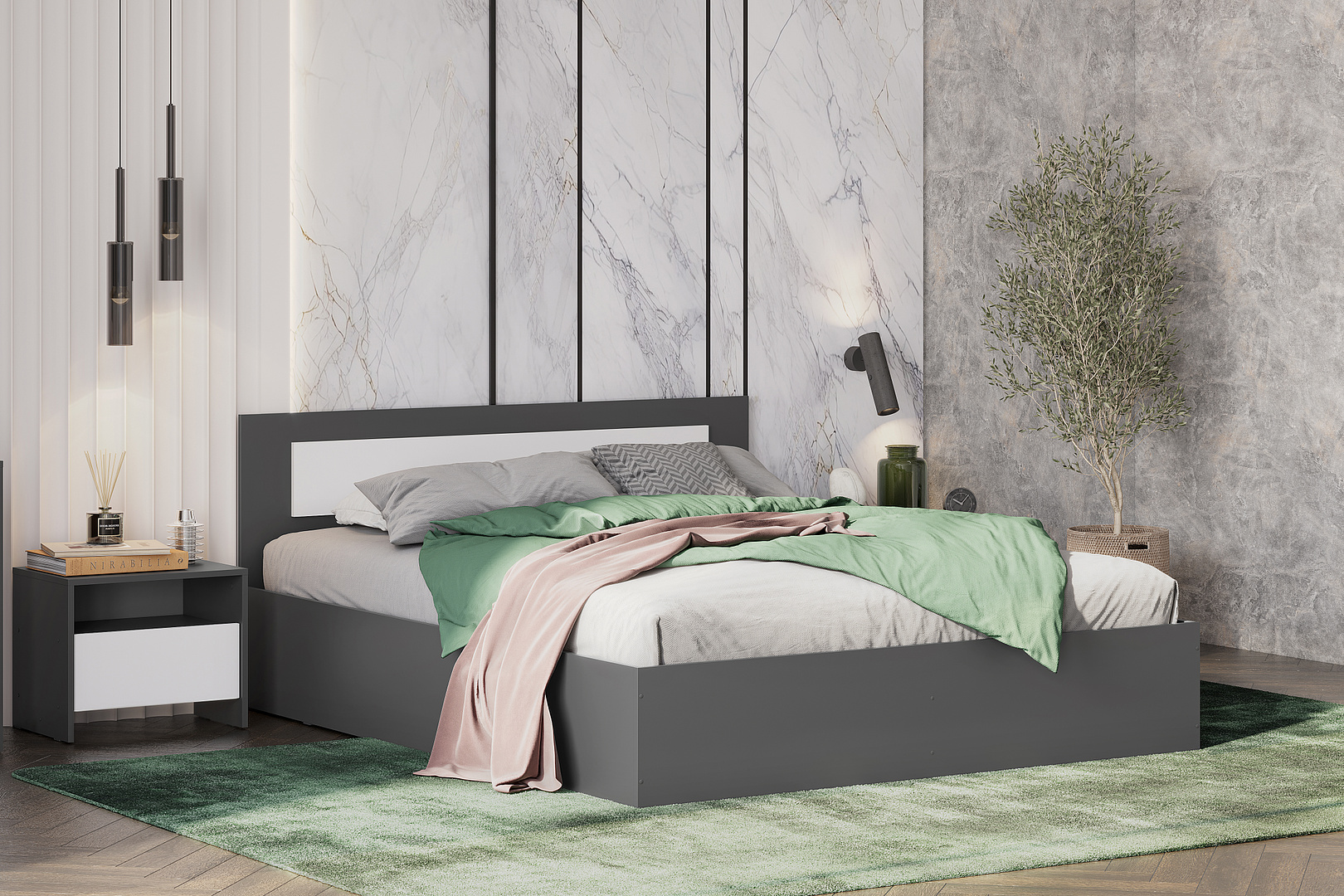 Кровать NN Мебель (МС Дольче К) Графит/Белый, 160/200