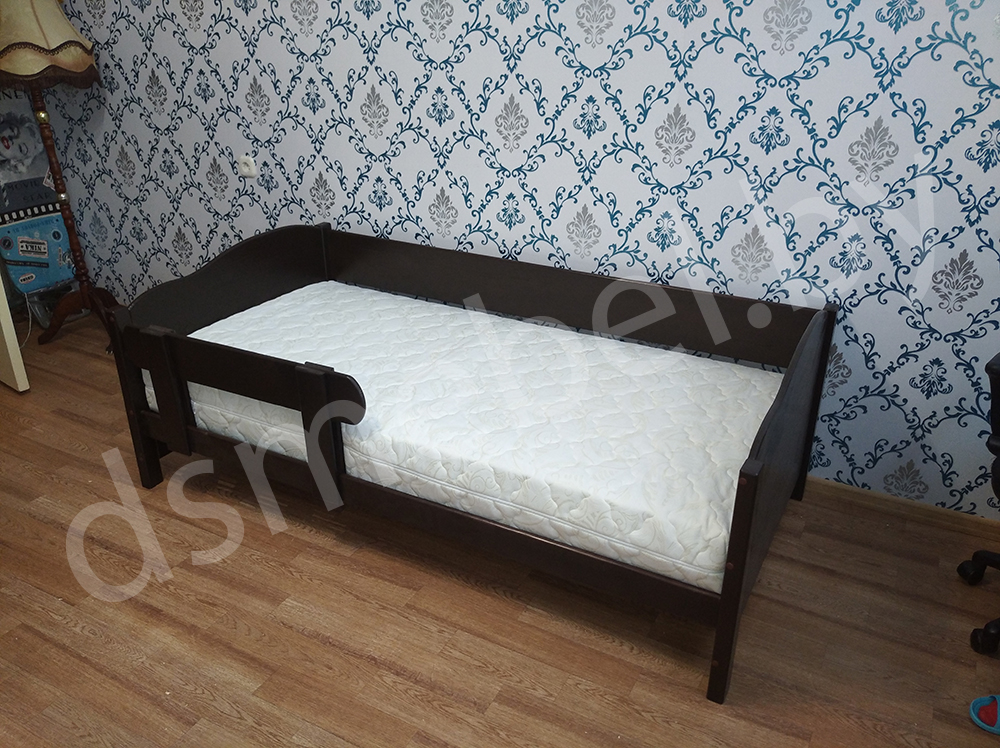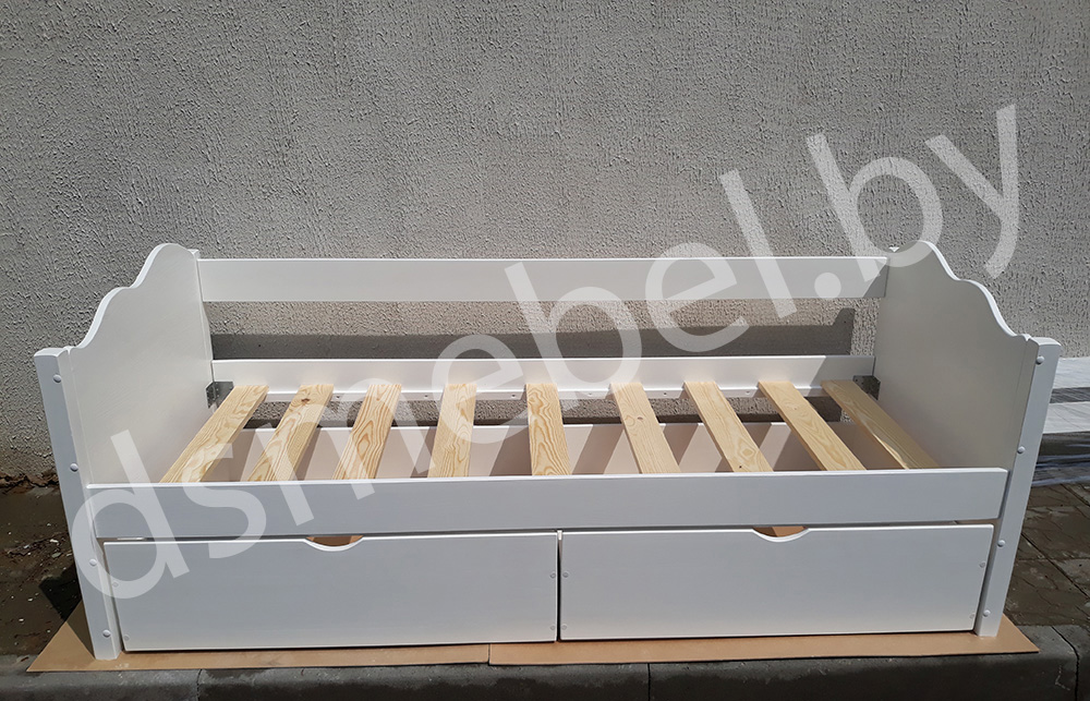 Кровать комплектуется реечным основанием под матрас (матрас в стоимость не входит). Модель можно дополнить выдвижными ящиками. Возможны любые изменения по размерам, конфигурации, цветовой гамме.