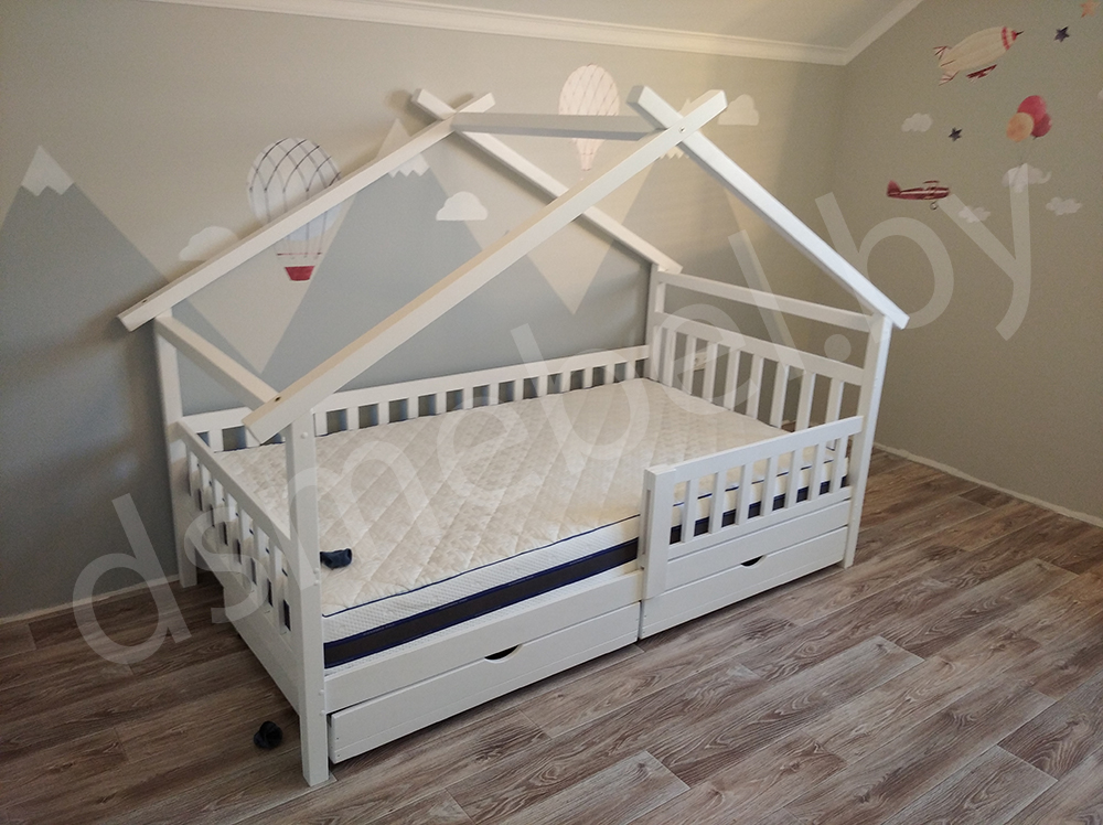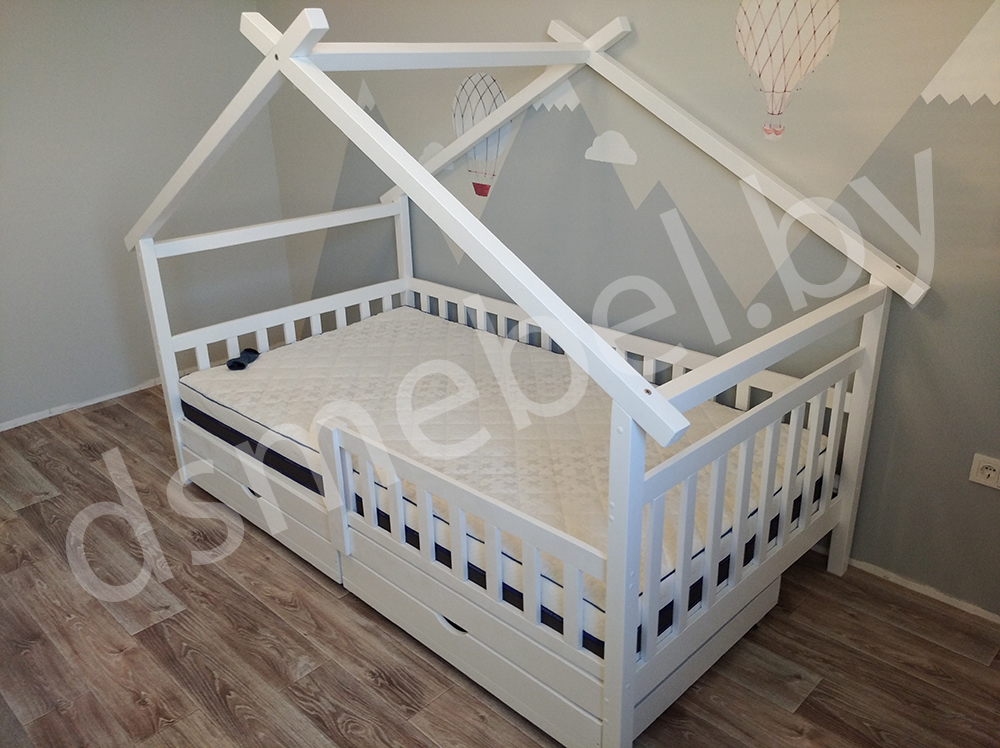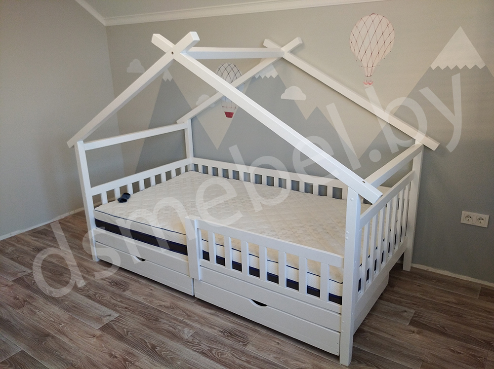Кровать односпальная из натуральных пород дерева (сосна). Комплектуется основанием под матрас (рейка). Цена указана без стоимости матрасов.