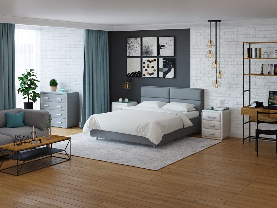 Спальное место (ДхШ): 200х120/140/160/180 см. Материал: МДФ, ЛДСП, фанера, ткань.
