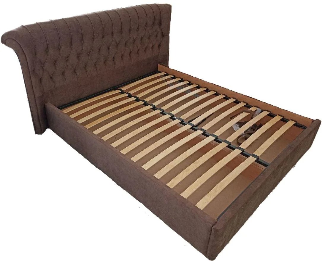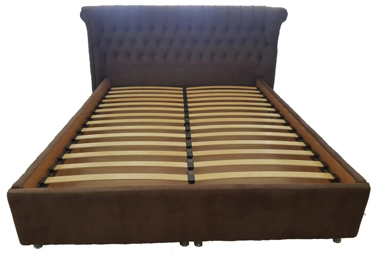 Мягкое высокое изголовье с каретной стяжкой. Удобное спальное место.