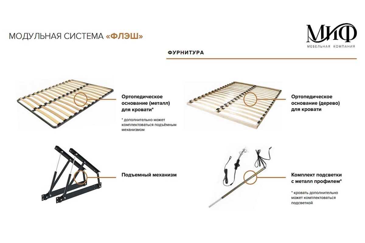 Материал изголовья: МДФ (с фрезеровочным рисунком "Флэш").