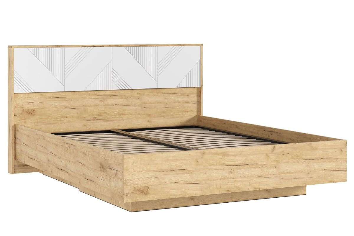 Кровать парящая «Ирис» 1,6 м с подъемным механизмом Дуб Крафт Золотой - Браш Вайт