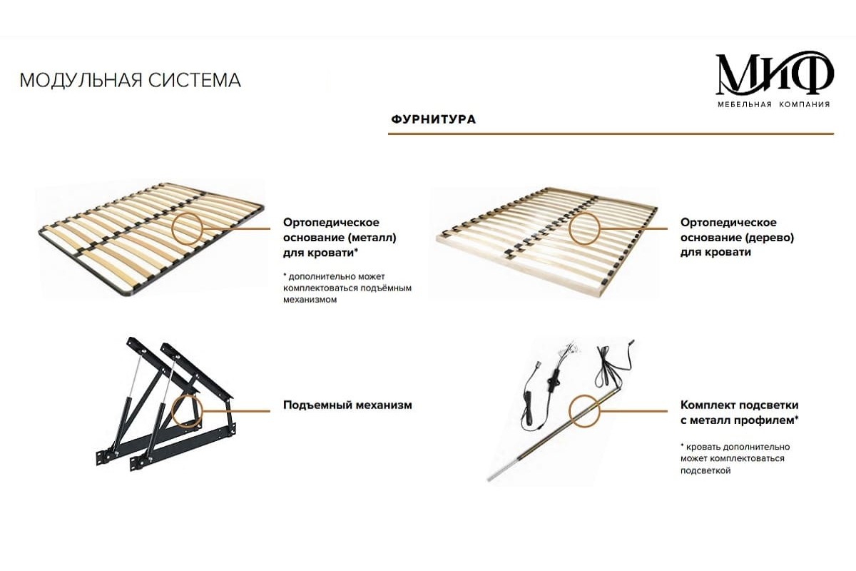 Спальное место: 160х200 см. Материал: МДФ, ЛДСП. Ортопедическое основание (металл) с подъемным механизмом.