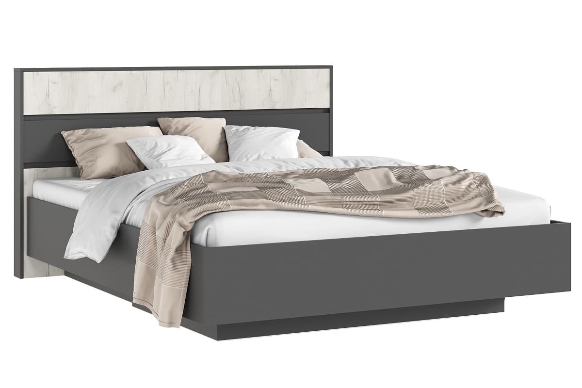Кровать парящая «Роджина» 1,6 м с подъемным механизмом (Графит - Дуб Крафт Белый)