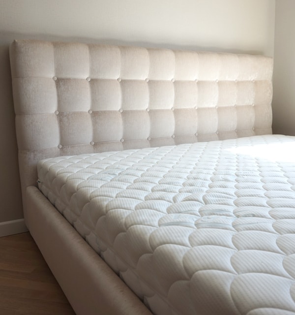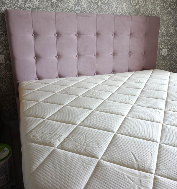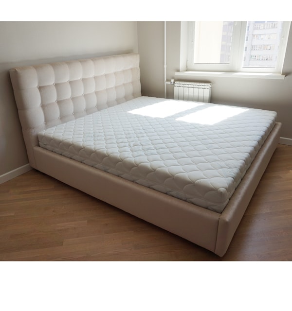 Изголовье декорировано вертикальными утяжками. Удобное спальное место.