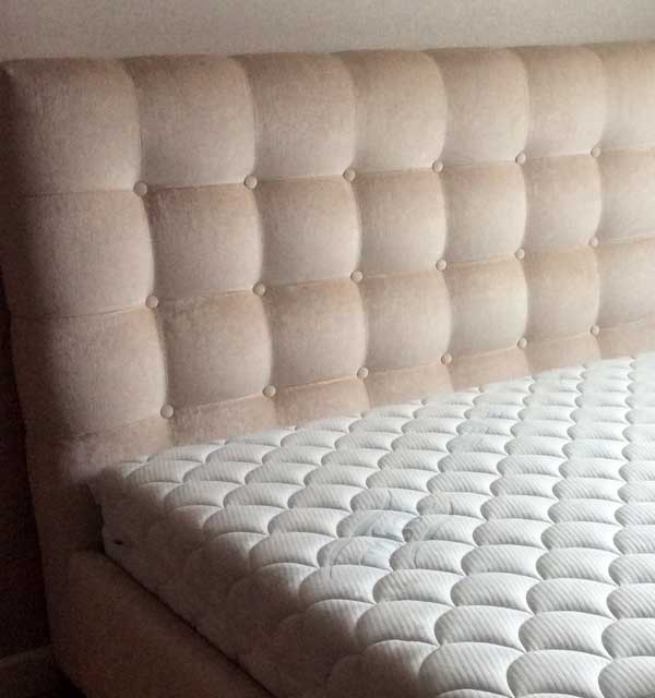 код 88926Кровать с изголовьем в виде сшитых квадратов с пиковкой декоративными пуговицами.