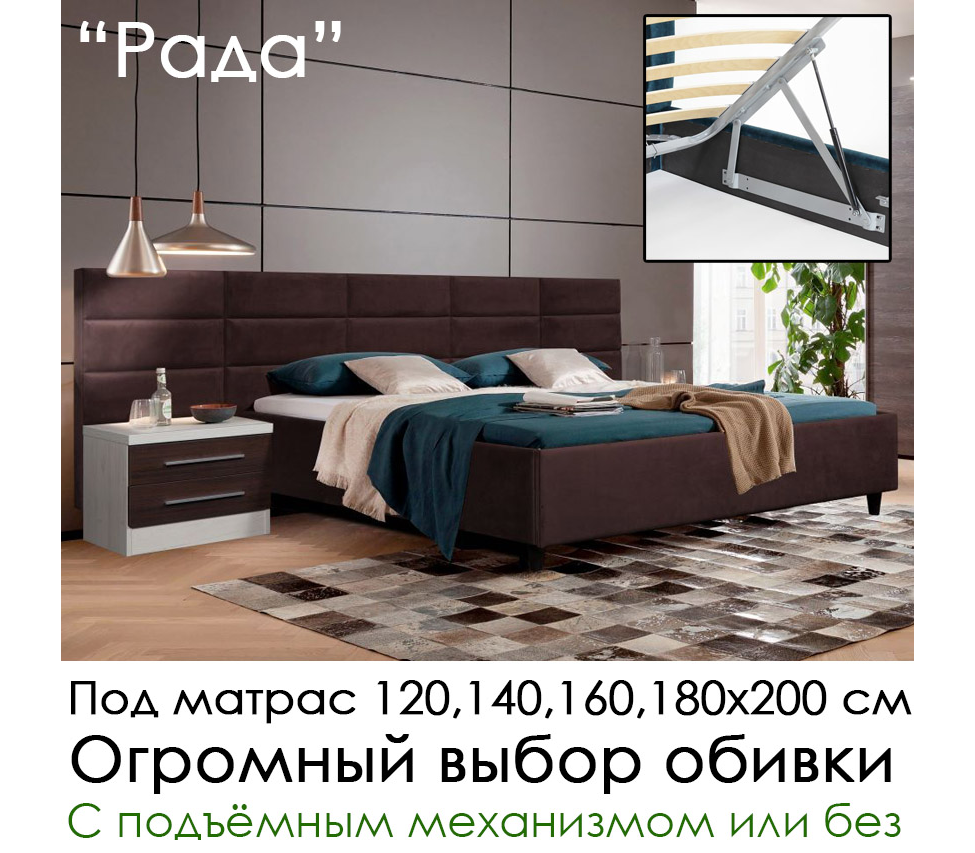 Кровать «Рада» (под заказ, выбор размера 120, 140, 160, 180, основания и обивки)