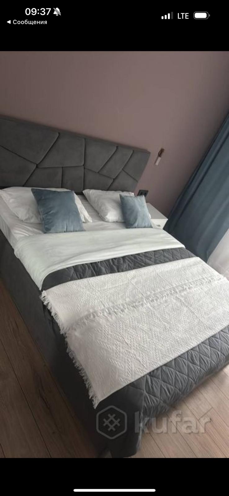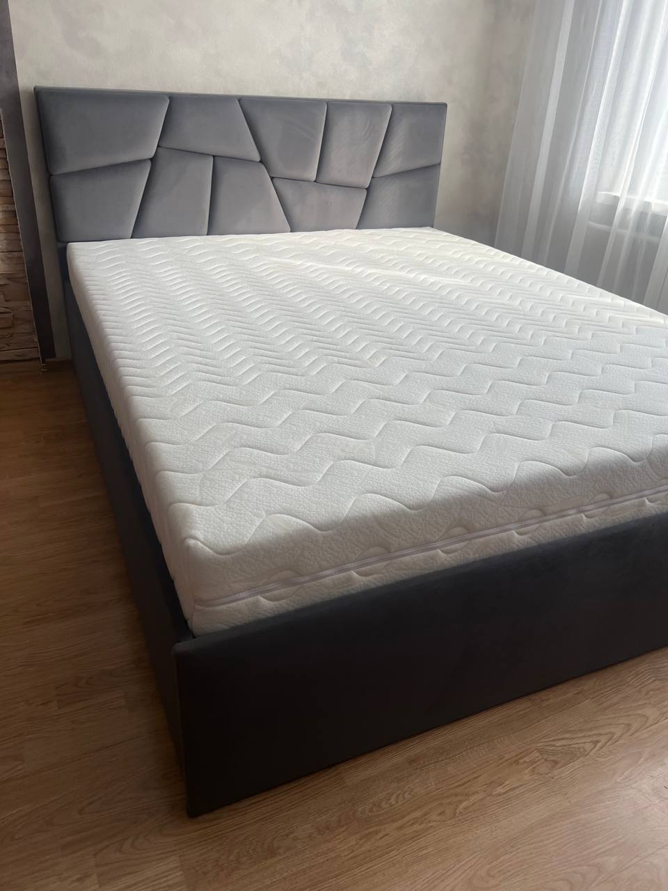 Двуспальная кровать с ортопедическим основанием и мягким изголовьем.