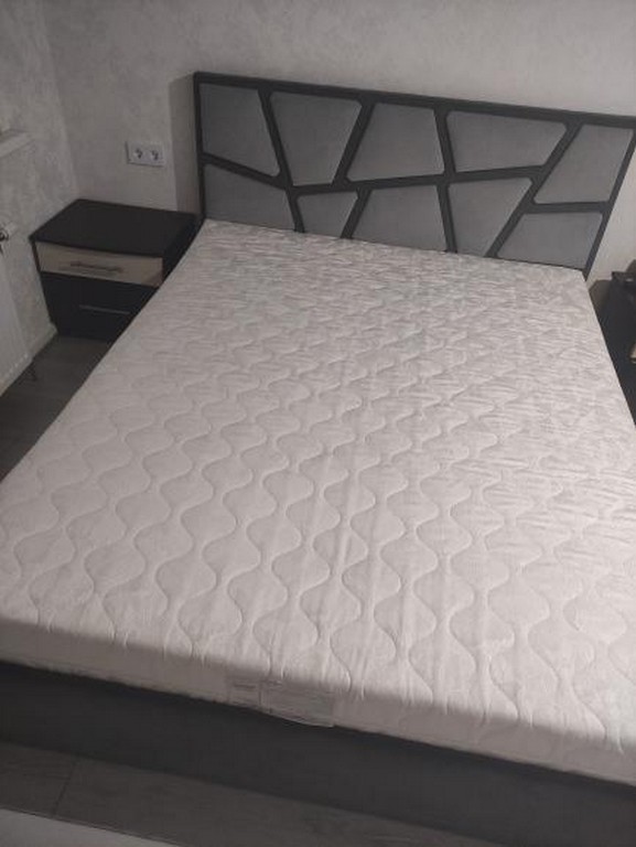 Двуспальная кровать с ортопедическим основанием и мягким изголовьем.