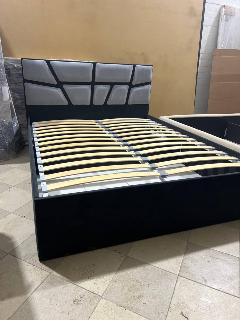 Двуспальная кровать с ортопедическим основанием и мягким изголовьем.