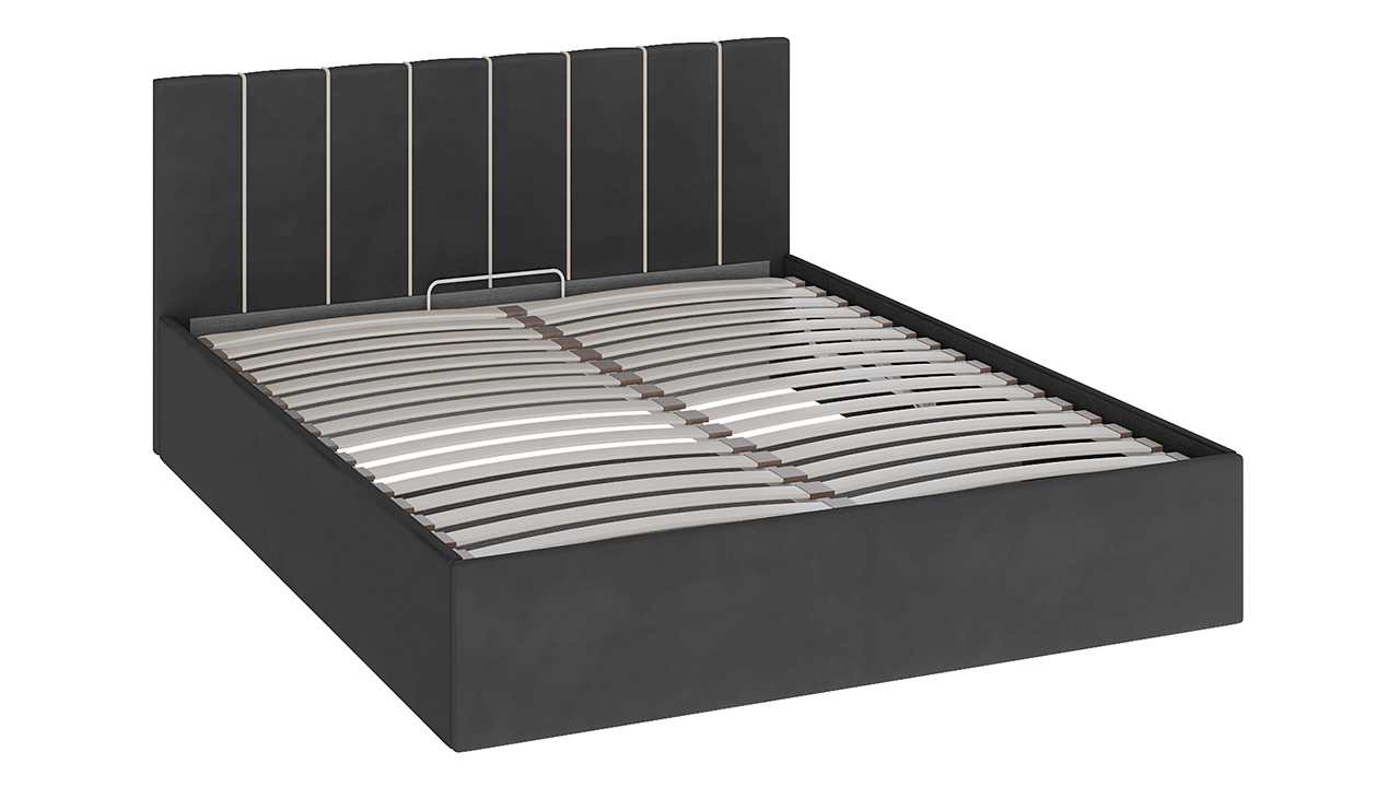 Кровать с подъемным механизмом «Верона» (Велюр Серый/кант Крем) 200 x 160