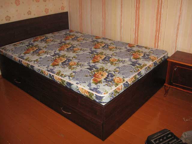 Двуспальная кровать с четырьмя выкатными ящиками. Такая конструкция кровати позволяет максимально полно использовать пространство спальни. Кромки облицованы меламиновой лентой. Широкая гамма расцветок. Габаритные размеры В*Дл*Ш, мм: 600*2040*1500.