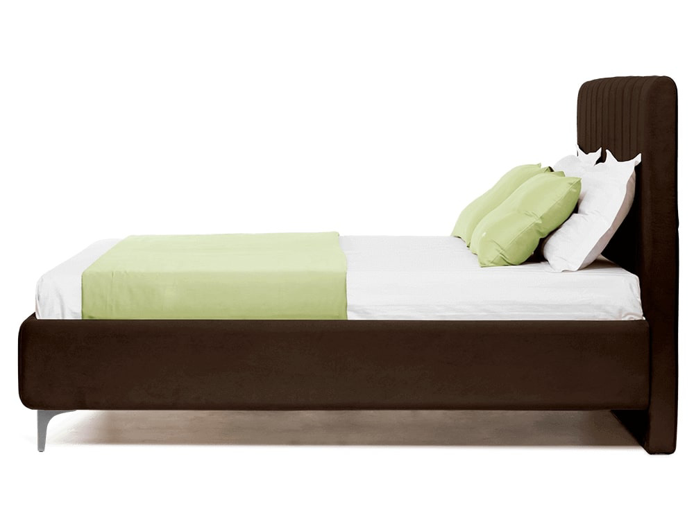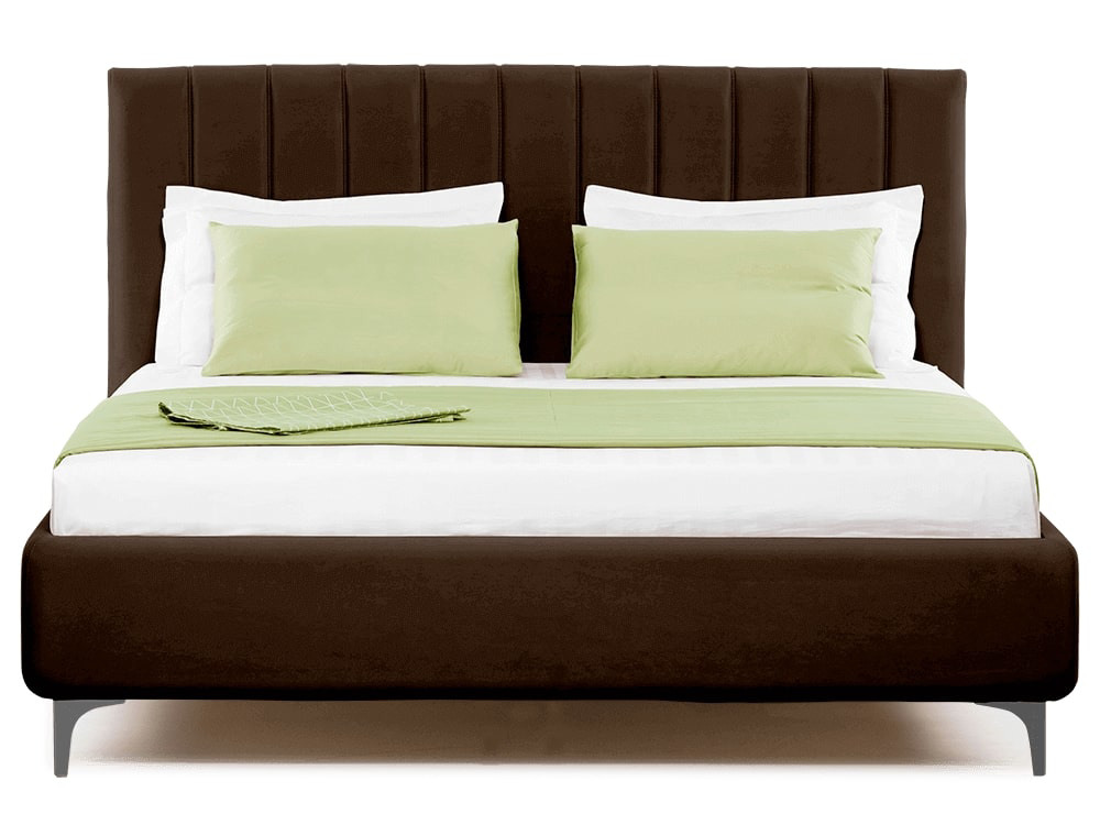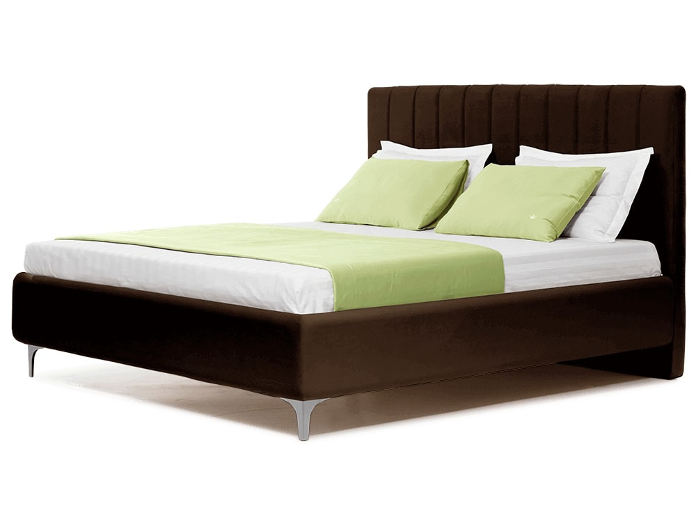код 124138Высокое прямоугольное изголовье декорировано вертикальными линиями. Изножье украшают аккуратные металлические ножки.