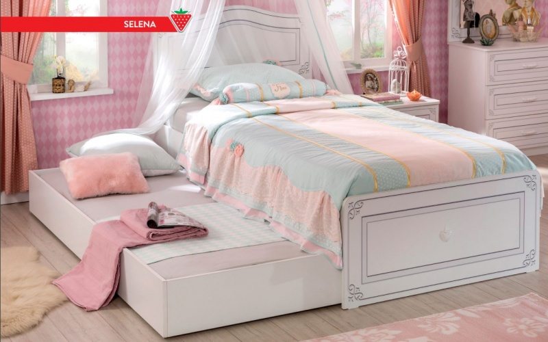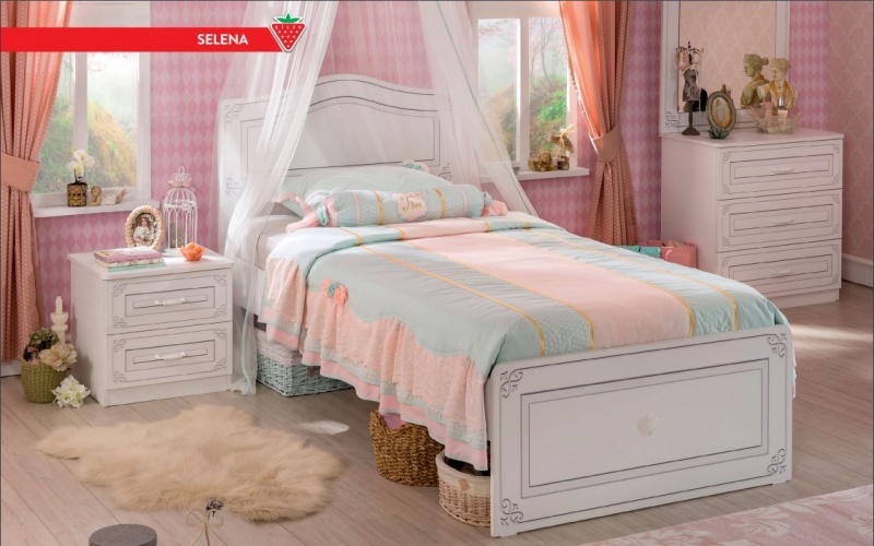 Классика в сочетании с современным веянием мебельной моды – так можно вкратце охарактеризовать кровать Selena. Фасад цвета слоновой кости смотрится оригинально за счет резных узоров. Модель имеет спальное место размером 200х100 см, матрас в комплект не входит.
