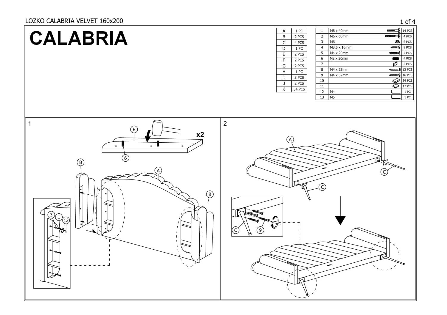Кровать «Signal CALABRIA Velvet» (серый) 160/200