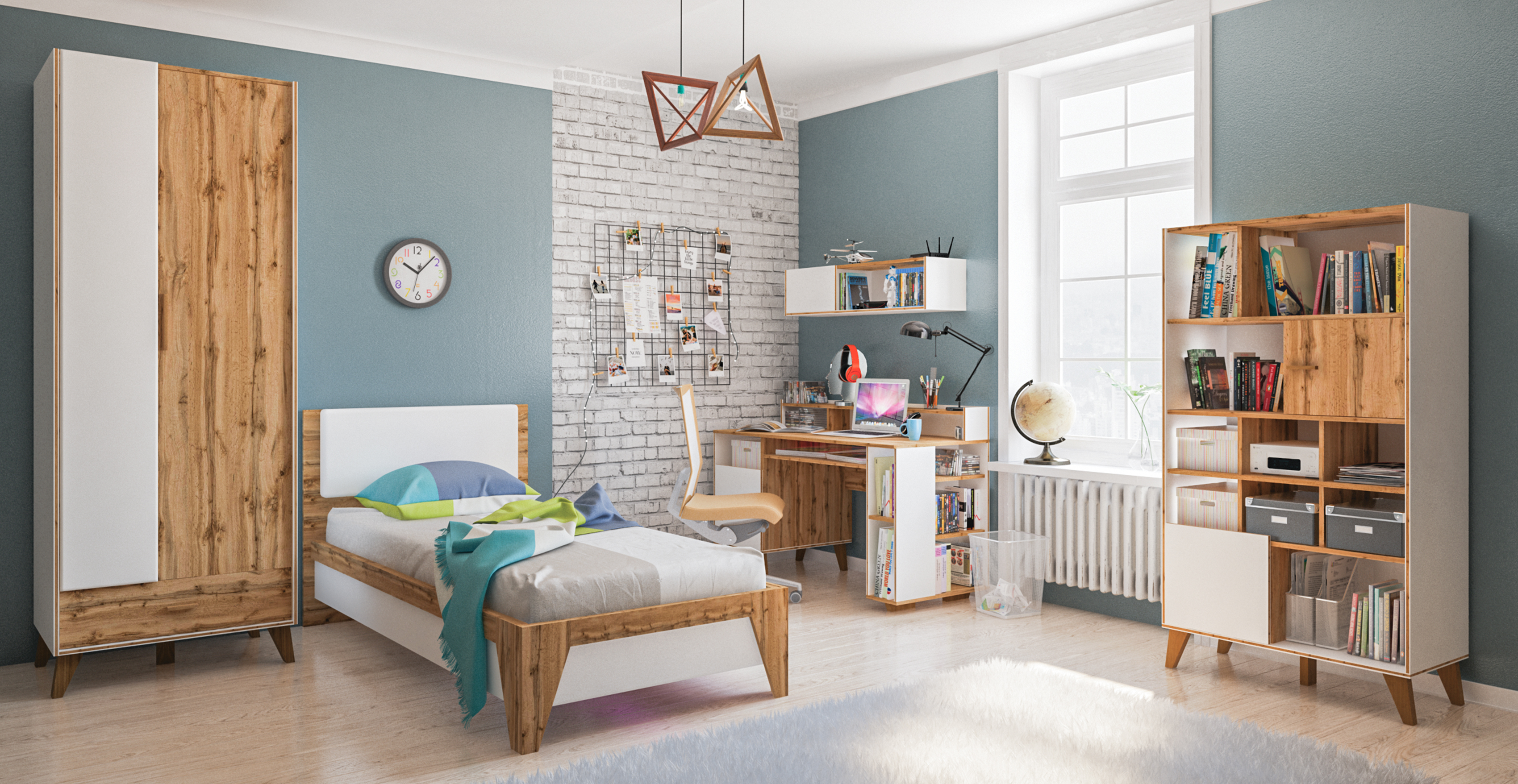 Кровать «Сканди МН-036-20-120» (Белый, Дуб Вотан)