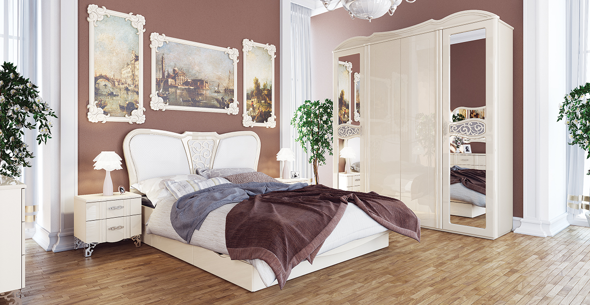 Кровать «Габриэлла 06.02-02 с настилом» (вудлайн кремовый)