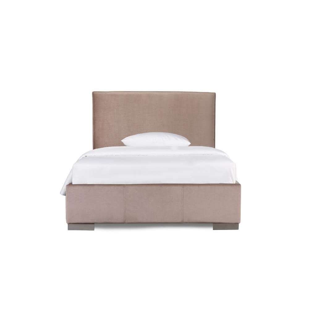 Мягкая кровать с двумя разными высокими изголовьями, которые создают иллюзию глубины.
