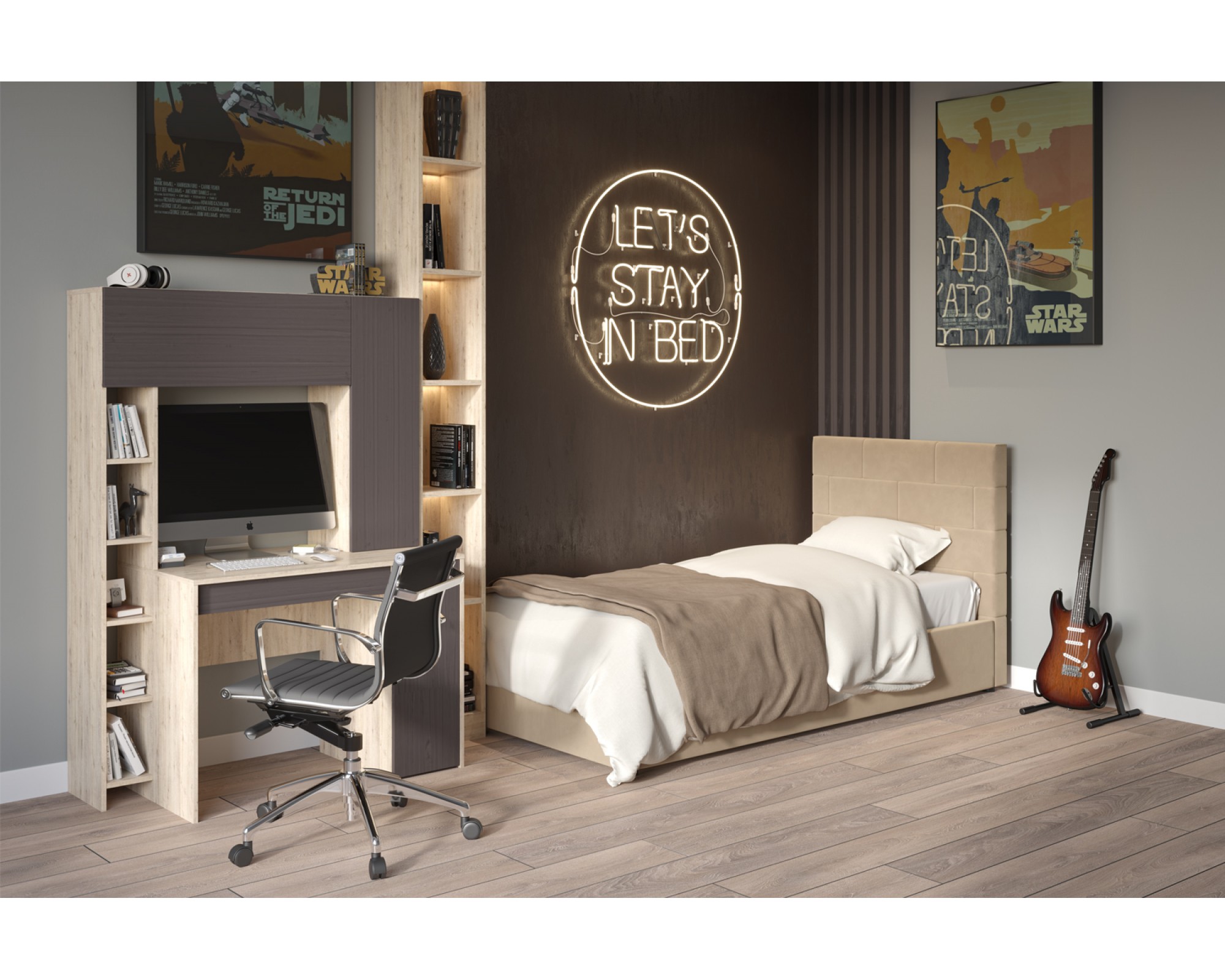 код 152542Спальное место (ДхШ): 200х90 см. Материал: МДФ, ЛДСП, фанера, микровелюр.