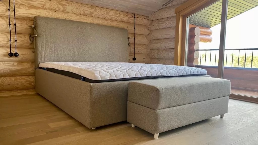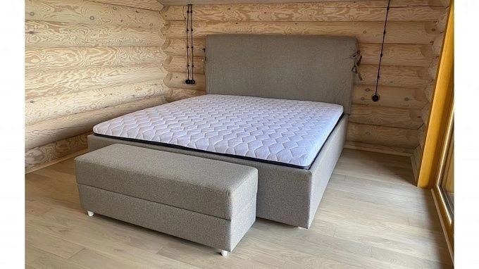Каркасы изголовья, царг и изножья кровати изготовлены из технически высушенного бруса хвойных пород и шлифованной водостойкой березовой фанеры, отличающихся высокой прочностью и долговечностью.