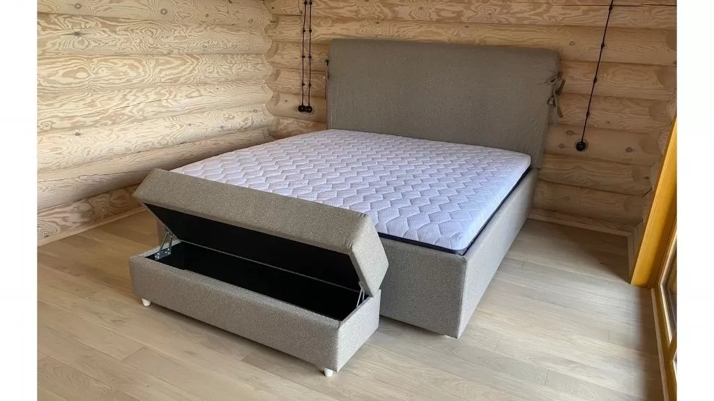 Кровать оборудована вместительной нишей для хранения постельного белья и подъемным механизмом на газовых амортизаторах (газлифт), позволяющих поднимать ортопедическое основание вместе матрасом.