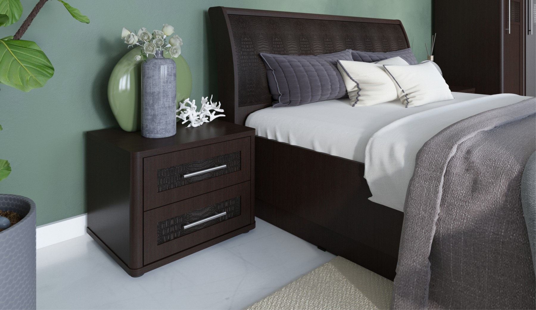 Спальное место (ДхШ): 200х160 см. Материал: МДФ, ЛДСП, фанера, микровелюр.