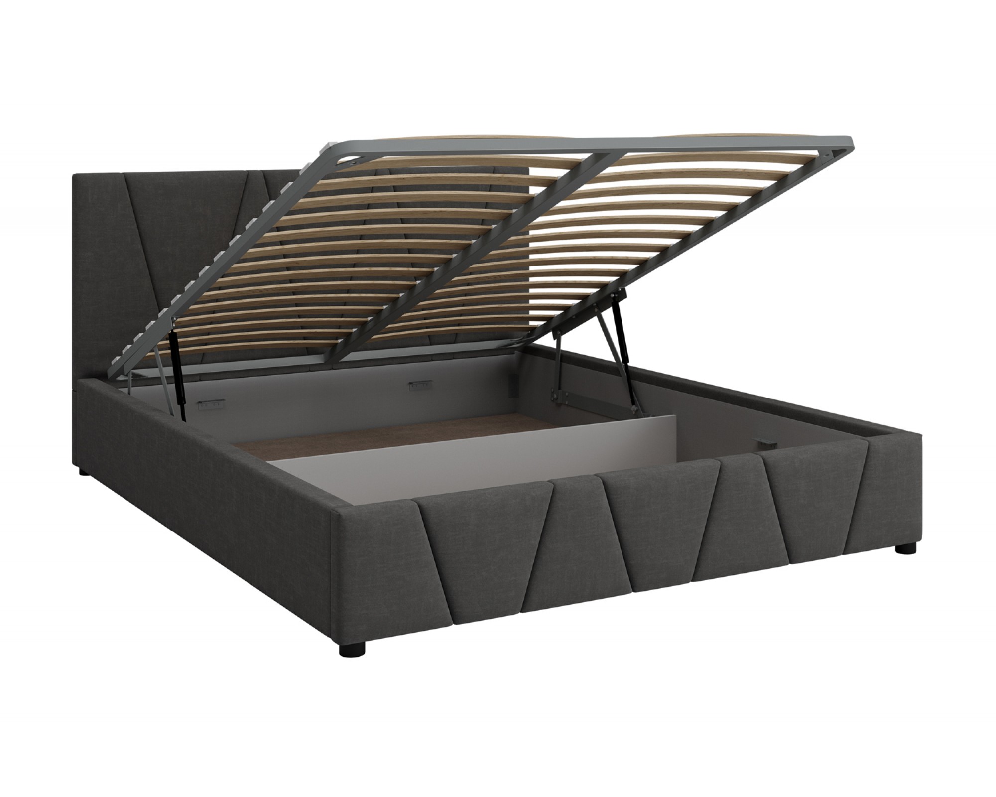 Кровать с мягким изголовьем Вендетта украшена стёжкографией в виде геометрического узора на спинке и изножье и выполнена в размере ширины спального места 160 см. Отделка придает декору строгости и лаконичности, а мягкая обивка - комфорта и роскоши. Интерьерная кровать Вендетта комплектуется металлокаркасным основанием (вариант 1) или металлокаркасом с подъемным механизмом с газовым амортизатором (газлифтом) (вариант 2). В случае выбора 2-го варианта основания спального места в кровати будет находиться вместительный бельевой ящик.