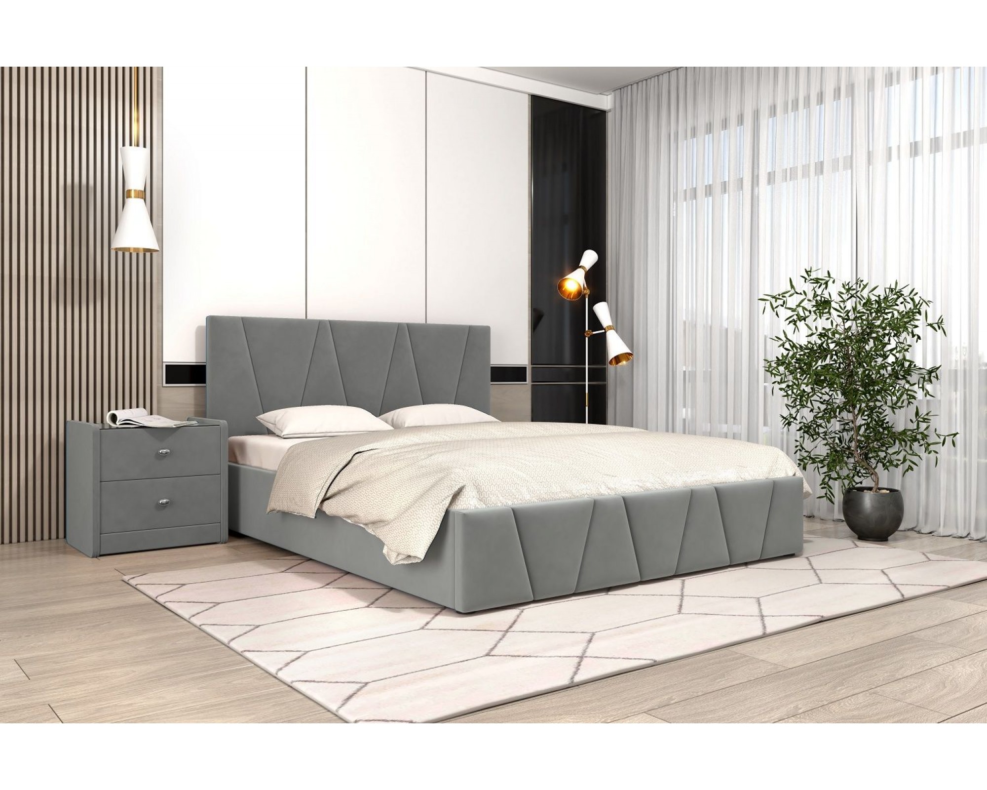 Кровать с мягким изголовьем Вендетта украшена стёжкографией в виде геометрического узора на спинке и изножье и выполнена в размере ширины спального места 160 см. Отделка придает декору строгости и лаконичности, а мягкая обивка - комфорта и роскоши. Интерьерная кровать Вендетта комплектуется металлокаркасным основанием (вариант 1) или металлокаркасом с подъемным механизмом с газовым амортизатором (газлифтом) (вариант 2). В случае выбора 2-го варианта основания спального места в кровати будет находиться вместительный бельевой ящик.