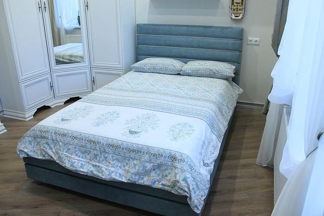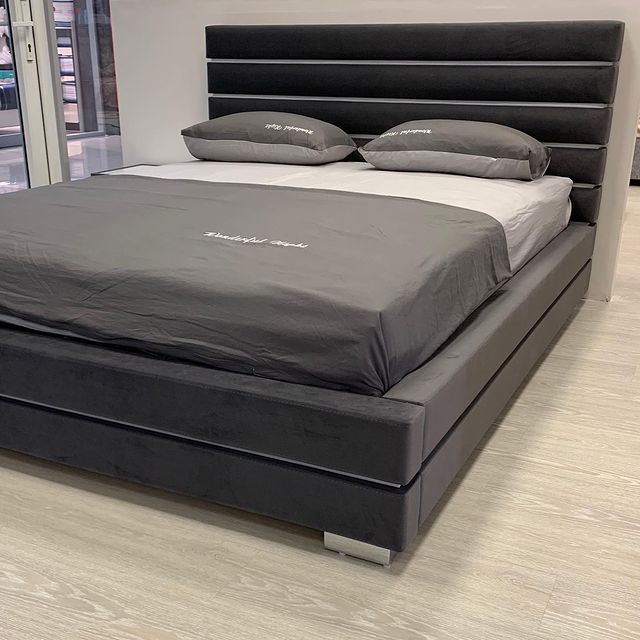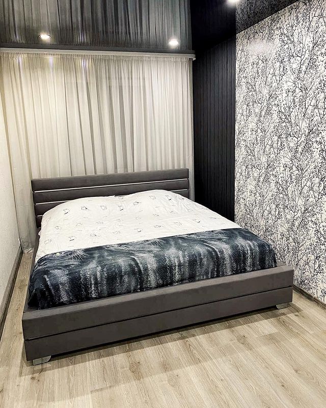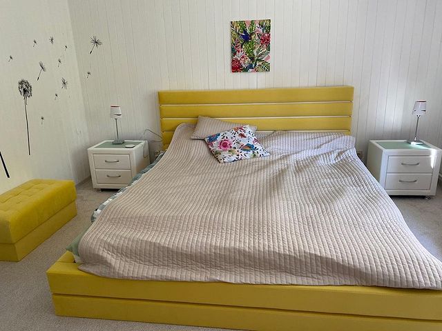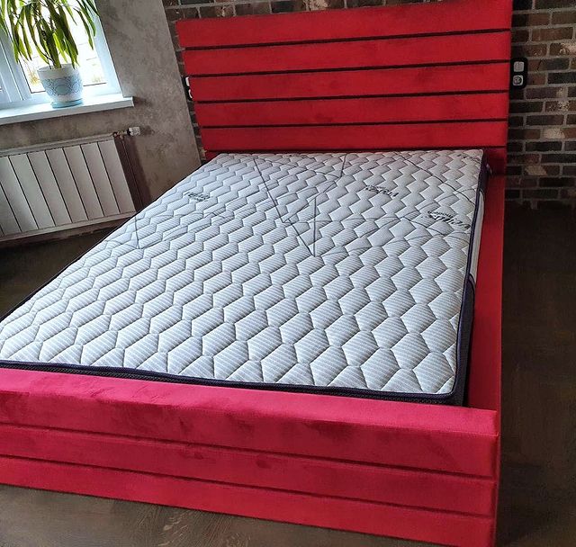 Изголовье декорировано вертикальными утяжками. Удобное спальное место.