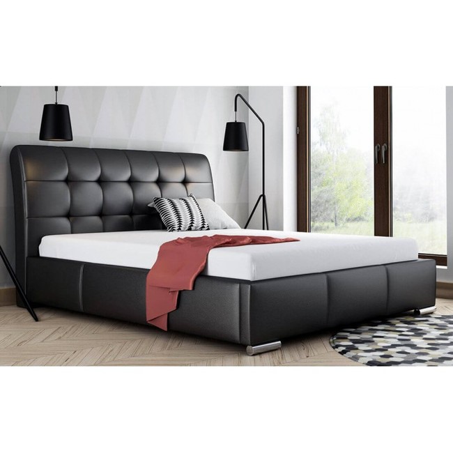 код 102431Черная гладкая обивка. Длина кровати: 2200 мм.
