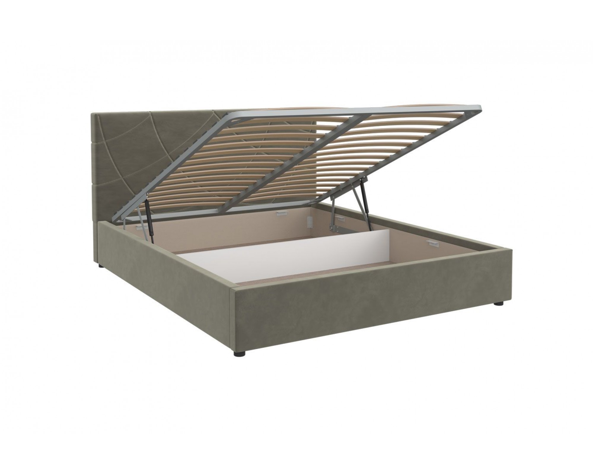 Спальное место: 2000x1600 (+/-20 мм). Кровать оснащена подъемным механизмом.