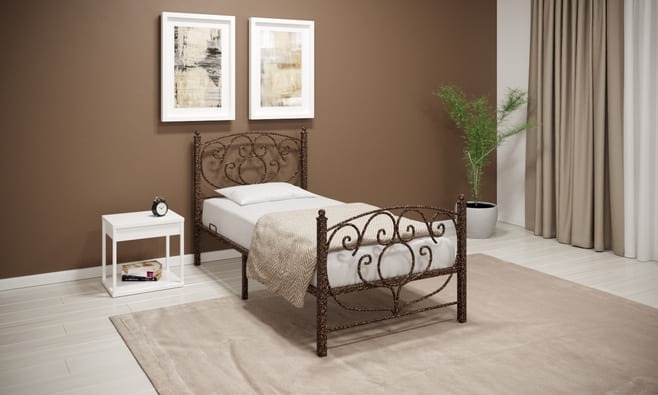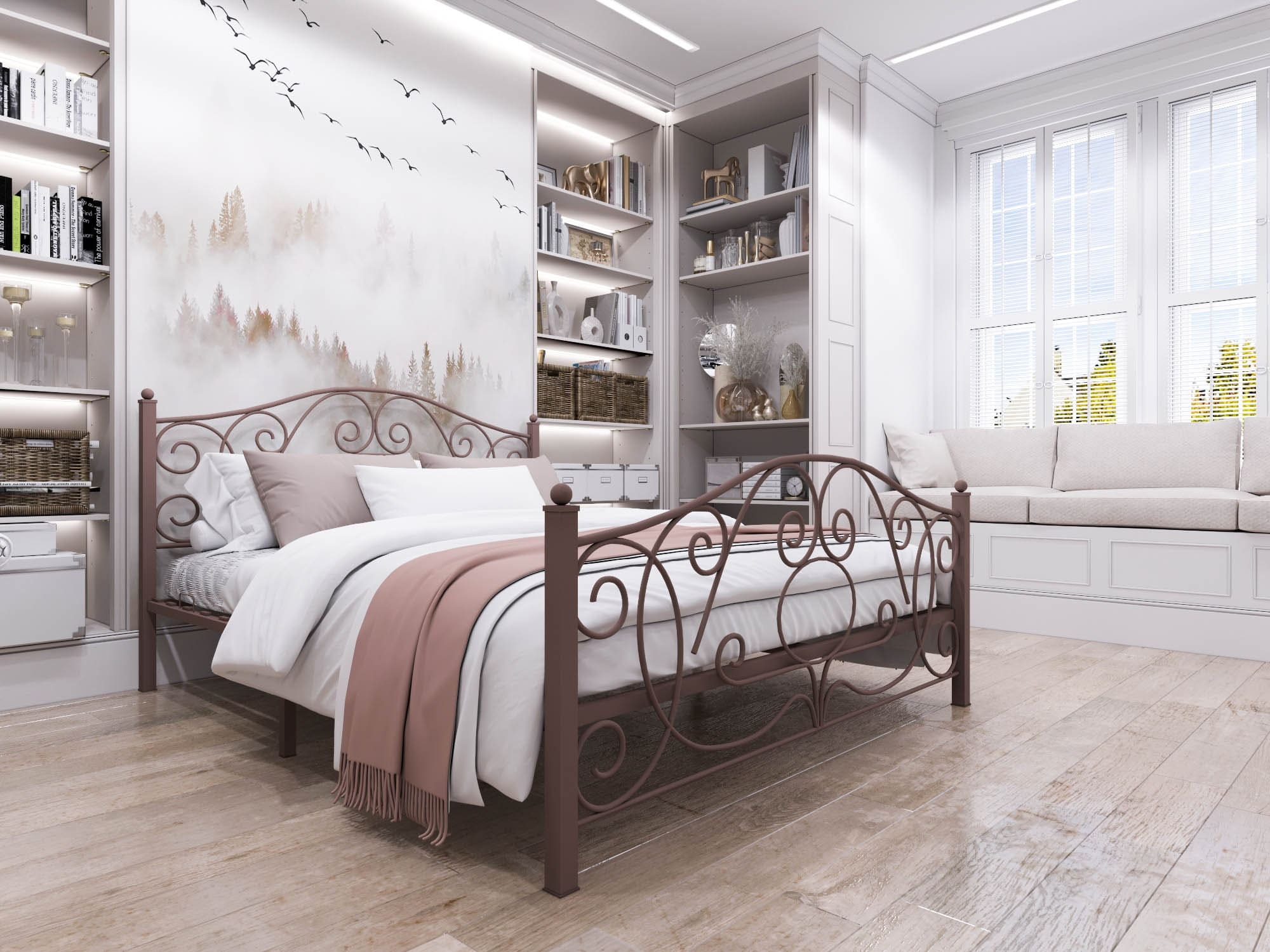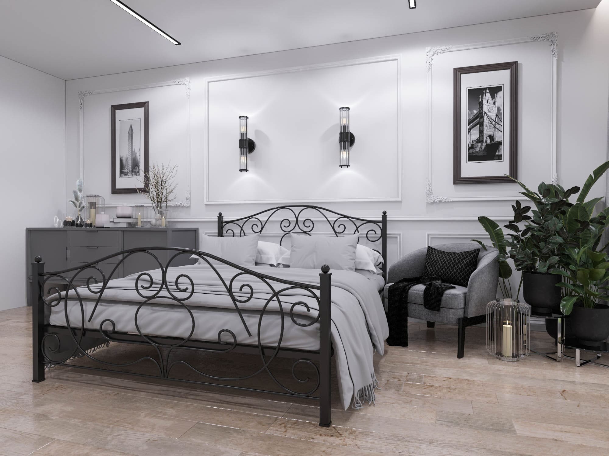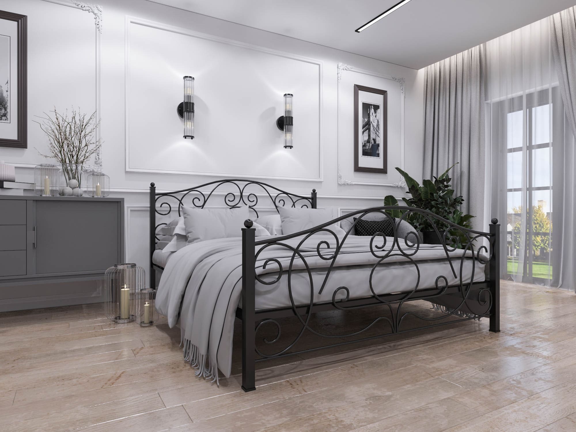 Металлическая кованая кровать Виктория — одна из самых ярких и грациозных моделей. Она подойдет как для винтажного интерьера, так и для классической спальни. Эта модель будет мило смотреться в детской комнате. Её романтические волны и завитки придадут изысканность даже в самой простой обстановке.