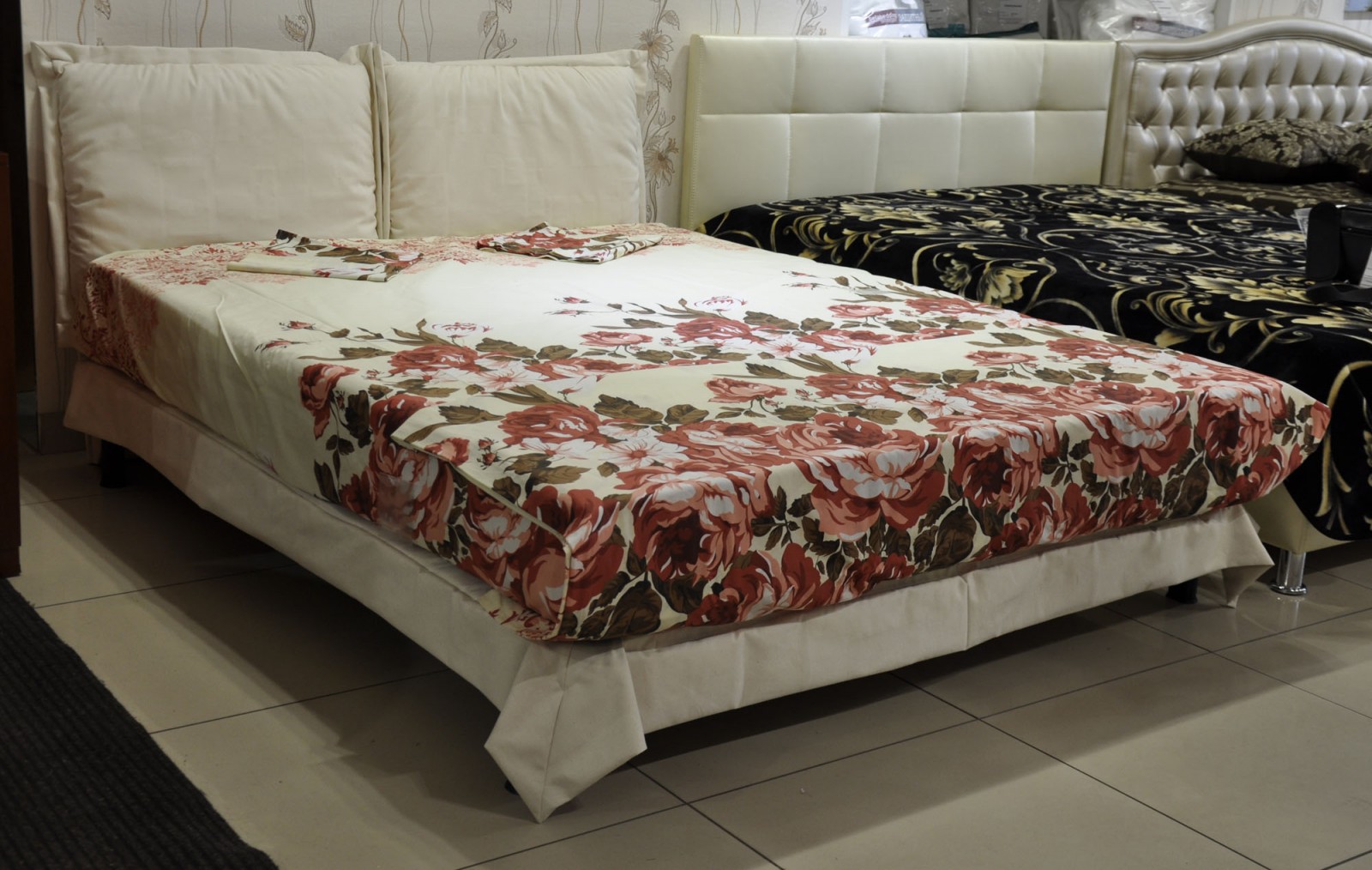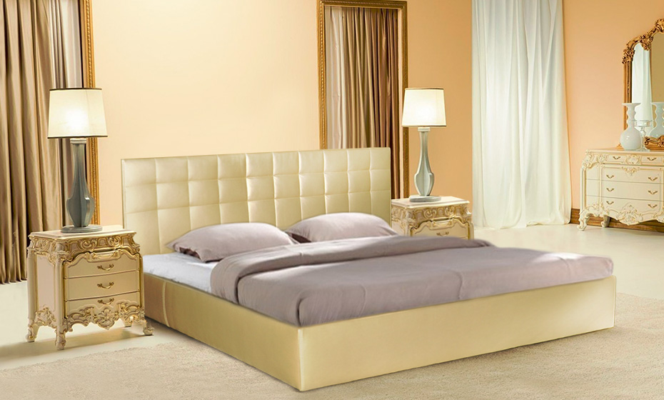 Бежевая двуспальная кровать