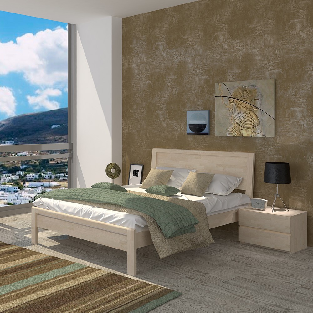 Двуспальная кровать из буковой древесины — отличный вариант как для спальни в городской квартире, так и для комнаты в загородном доме. На выбор предлагается несколько вариантов цветовых решений для оформления модели. По желанию покупателя кровать может быть дополнена вместительными ящиками для постельных принадлежностей.